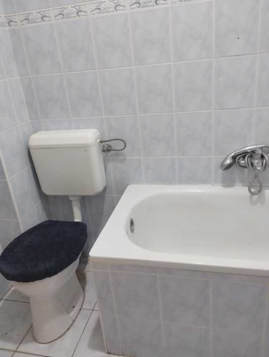 A szobában laminált parketta a többi helységben hidegburkolat került lerakásra.