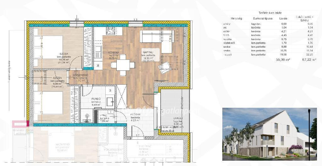 Jelen hirdetési ár a 2. emeleti 4-es lakás, amely 56m2 + 6m2 erkély.