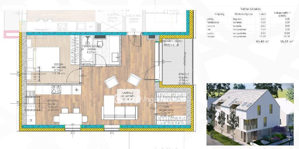 Jelen hirdetési ár a 2. emelet 5A lakás, amely 45,46m2 + 6m2 erkély.