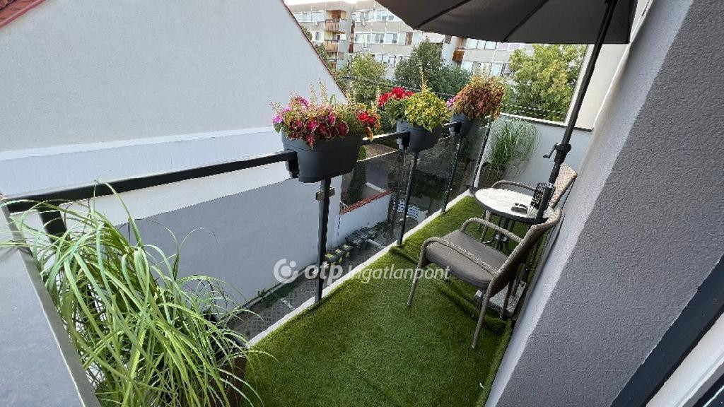- az egyik erkély jelenleg napozó ágyas, a másik pedig prémium műfüves napernyővel, kis kiülő szettel