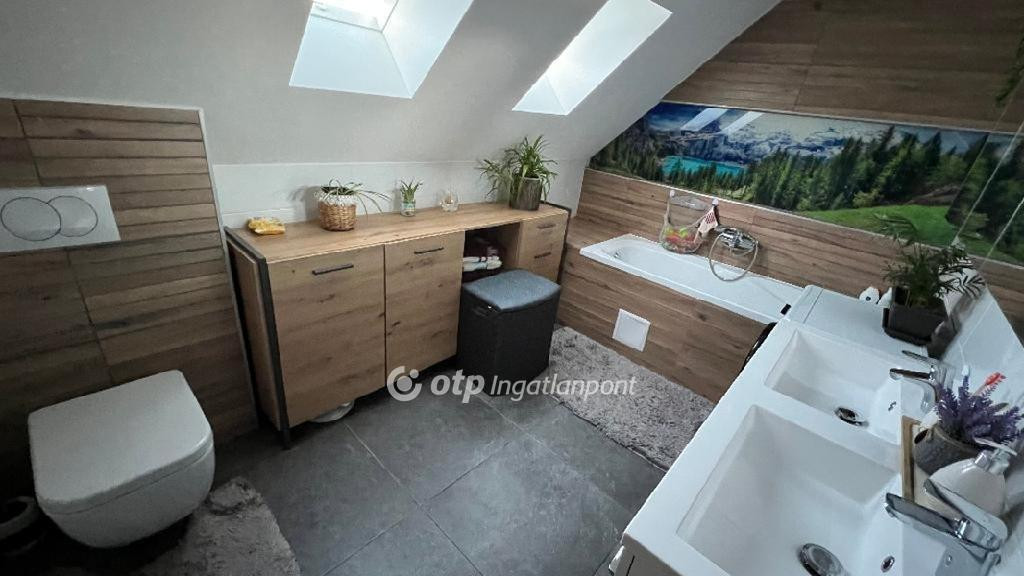 - nagy méretű fürdő dupla mosdóval szintén WELLIS