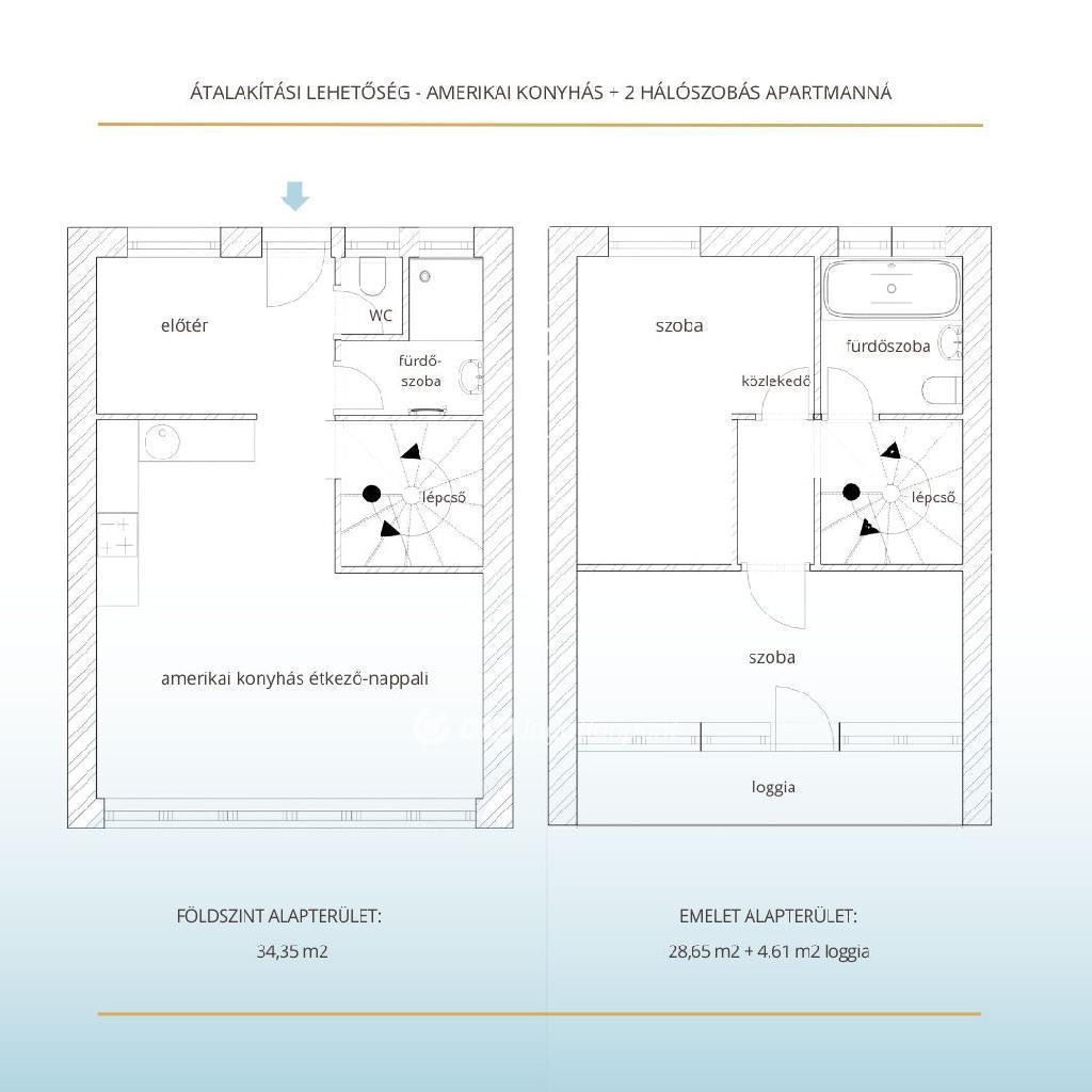 Az épület kívülről már felújított, így az új tulajdonos saját elképzelései szerint alakíthatja ki a belső tereket. Egy-egy lakás 63 négyzetméter alapterületű és jól átgondolt elrendezéssel rendelkezik. A földszinten egy világos nappali, egy konyha, valamint egy fürdőszoba található, a terek pedig könnyedén egy egylégterű amerikai konyhás nappalivá alakíthatók, így még tágasabb és modernebb kialakítást kaphat az otthon. Az emeleten két hálószoba kapott helyet, az egyikhez egy kényelmes loggia is tartozik, ahol a reggeli kávé mellett élvezhető a kellemes környezet. Az emeleten szintén található egy fürdőszoba, így a lakás még praktikusabbá válik a mindennapi élethez.