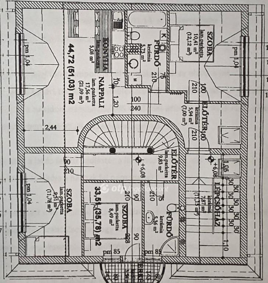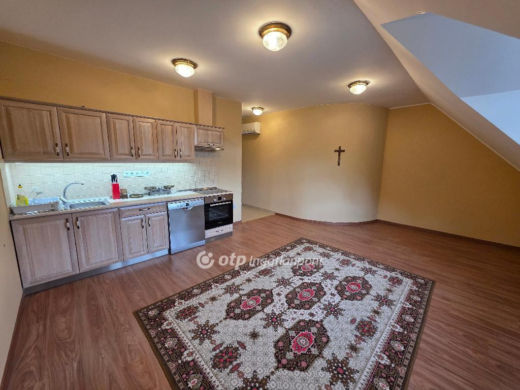 Helyiségek: saját használatú lépcsőház kis előtérrel, előszoba, amerikai konyhás nappali, szoba, fürdő + WC