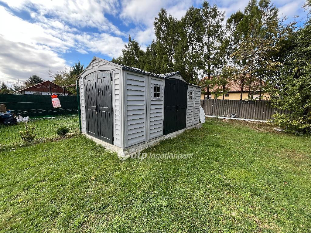 Hegyeshalomban, a Dózsa György utcában, egy 48 m2-es, téglaépítésű sorházi lakás eladó, közös, nagy kerttel és egy 12 m2-es műanyag kerti házzal.