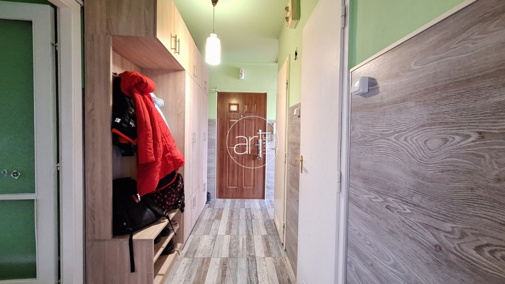 A lakás új, biztonsági bejárati ajtót kapott, illetve minden külső nyílászárót korszerű, műanyagra cseréltek, bele értve az erkély ajtót is. Az ablakokat redőnnyel látták el, és több szúnyogháló is felszerelésre került. Az ingatlan minden burkolata megújult: a szobákban laminált padló, míg az egyéb helyiségekben tartós és könnyen kezelhető hidegburkolat található. Az előszobában egy nagy méretű, oda gyártott szekrény biztosít kényelmes tárolási lehetőséget, ami természetesen megegyezés szerint a lakásban is maradhat.