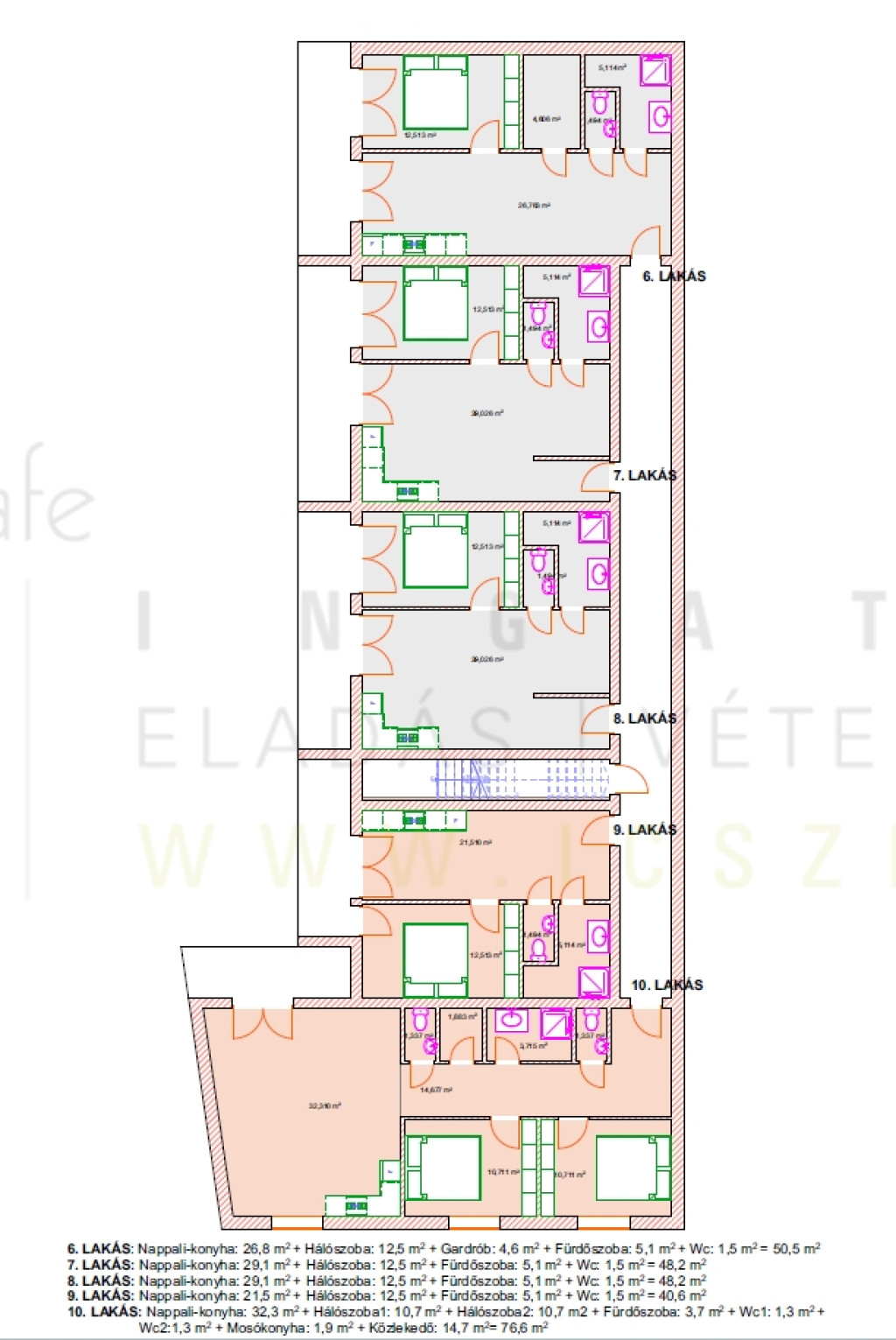 Tíz lakásos társasházban jó elrendezésű, kulcsrakész átadással lakások eladók!