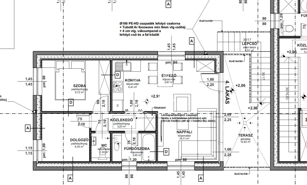 Az épület tégla szerkezetű, nagy teherbírású technológiával készült. 20 cm vastag külső hőszigetelést kap. Hanggátló gipszkarton belső falrendszert kerül kialakításra. A projekt kezdeti szakaszában ezeket még lehet módosítani. Hangszigetelt födém kerül a szintek közé, Bár ennél a lakásnál ennek kis jelentősége lesz, hiszen közvetlen falszomszédja nincs és alatta garázsok kerülnek kialakításra. Háromrétegű, kiváló hő- és hangszigetelésű nyílászárókkal lesz még élhetőbb a lakás.