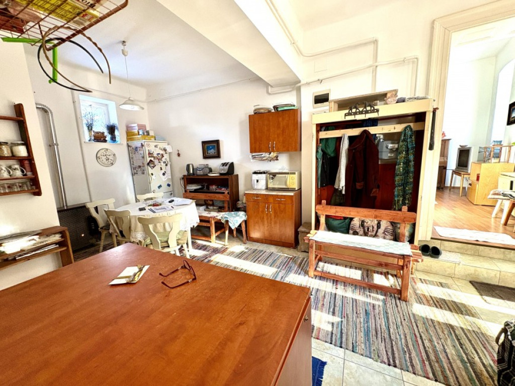 Eladó a Zsoldos utca elején egy földszinti társasházi lakás, melléképülettel, saját tárolóval. Ez egy valamikori polgári házból kialakított lakás - önálló mérőórákkal. Utcai bejárat a száraz kapubejárón át az udvarról nyílik, így nagyon csendes a környezet. Belépve egy konyha-előszoba helyiségbe érkezünk, ahonnan balra fürdő-WC, szemben spájz, jobbról a nagy - mintegy 33 m2-es lakószoba érhető el. Ez a szoba galériázott (13 m2-es), így szinte két helyiséggé van osztva.
