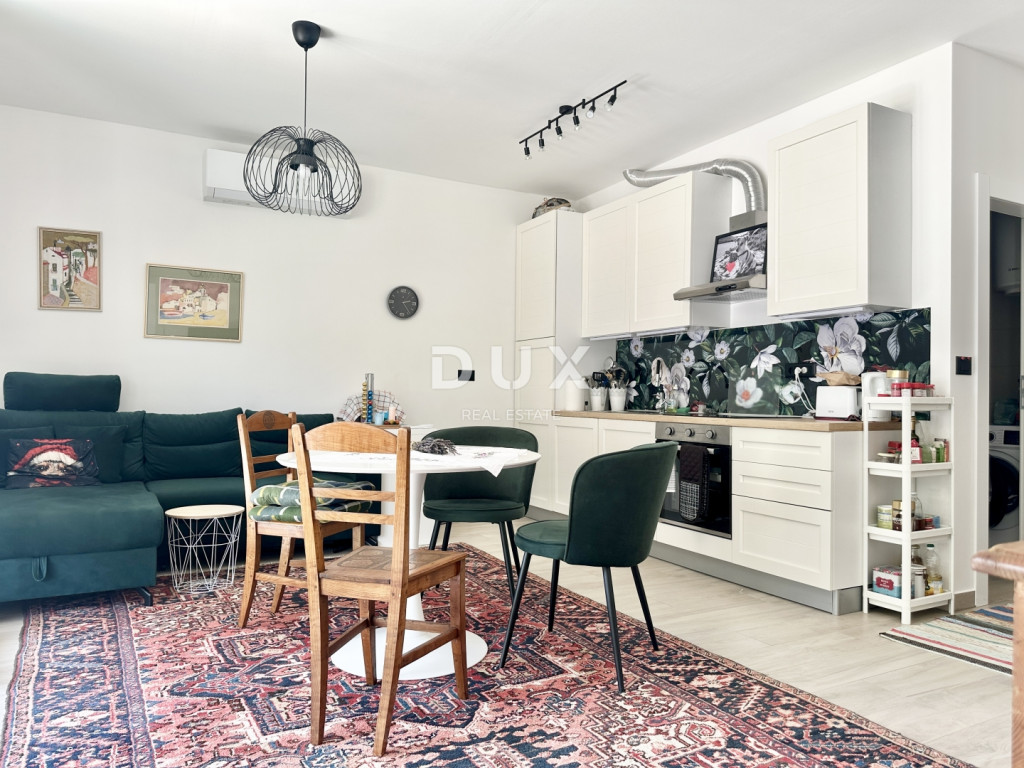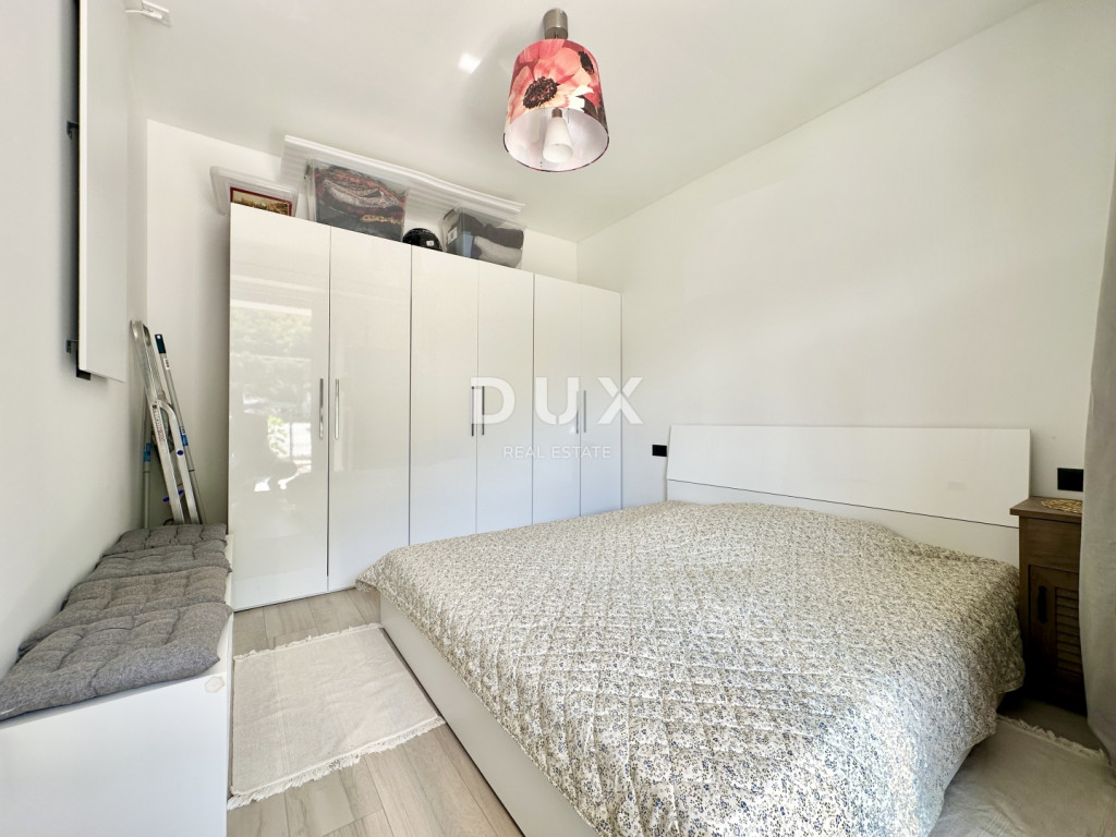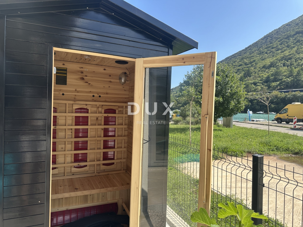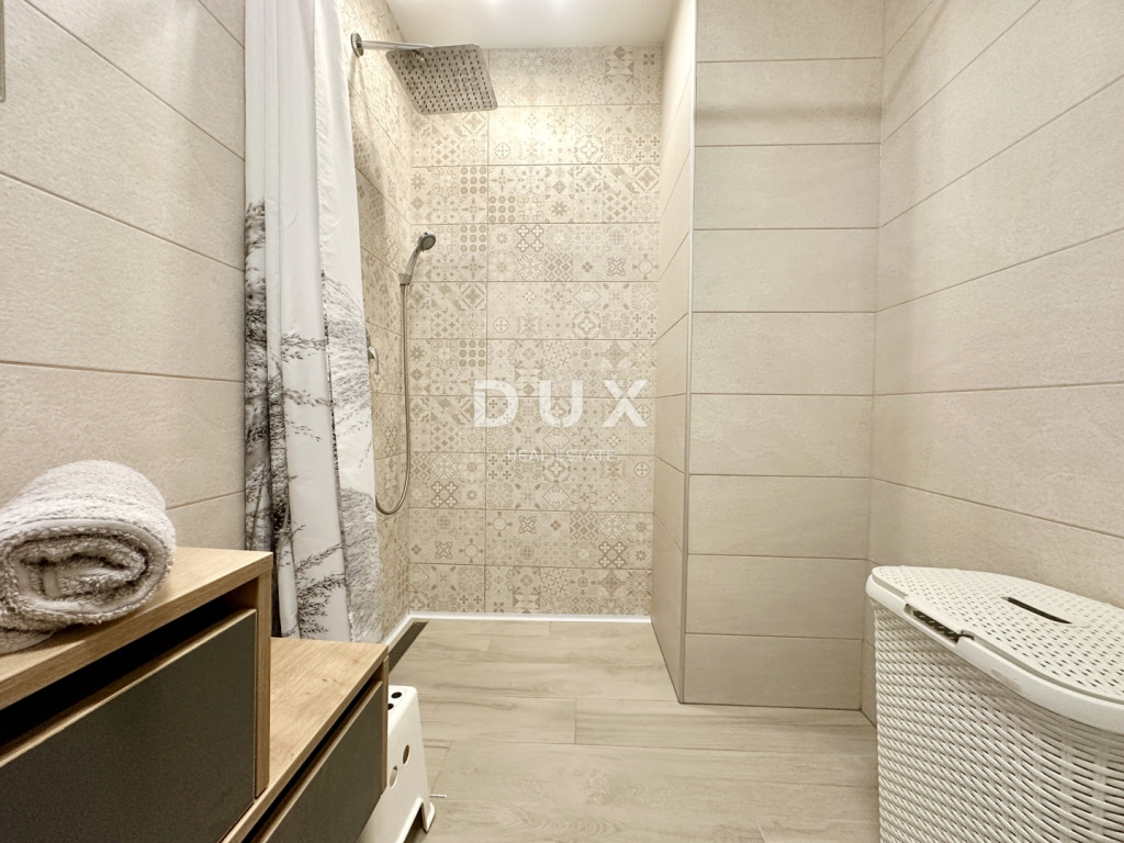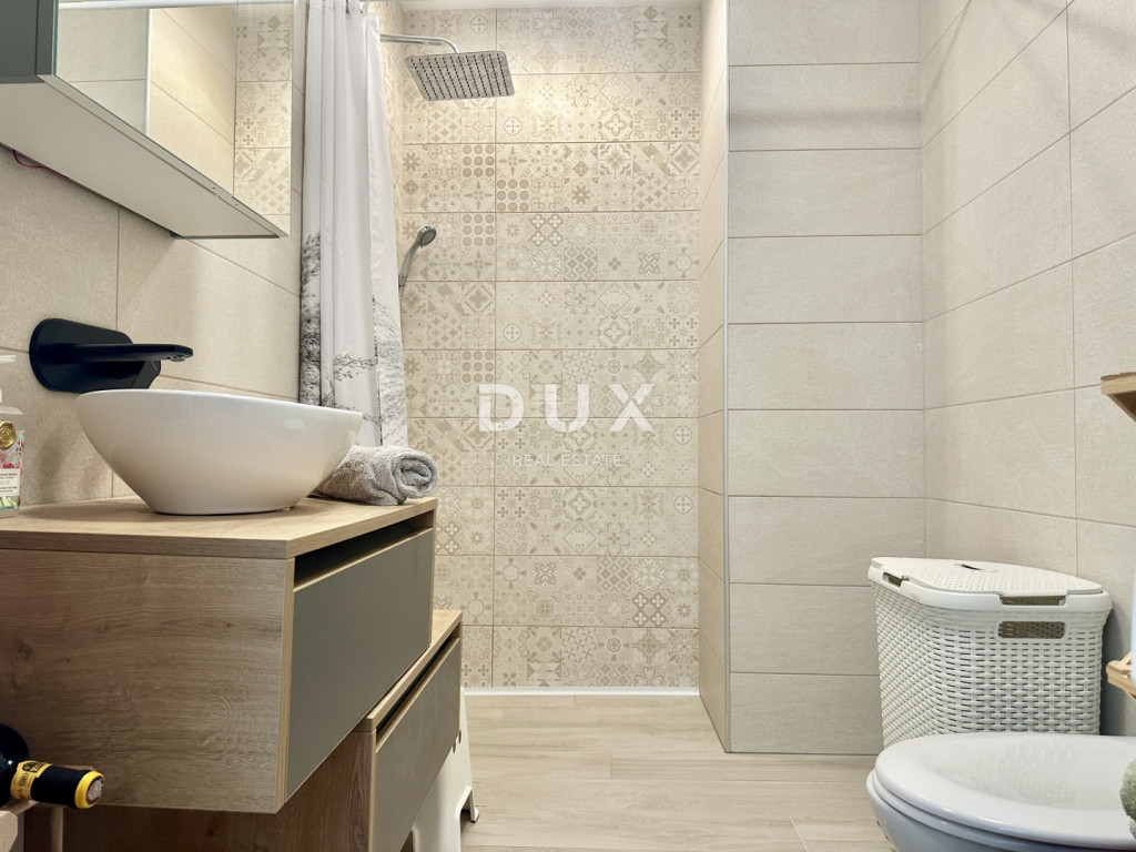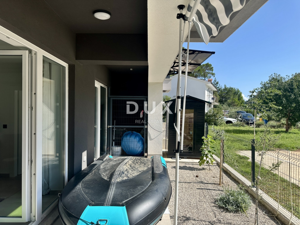 Eladó egy modern apartman egy 2023-ban épült kis lakóépület földszintjén, mindössze 10 méterre a tengertől és a strandtól. Az apartman rendkívül csendes helyen található, ugyanakkor éttermek, üzletek és minden szükséges szolgáltatás közvetlen közelében - mindössze 2 perc sétára. Az 56,62 m²-es összterületű apartman előszobából, fürdőszobából, konyhával és étkezővel ellátott nappaliból, egy hálószobából és egy fedett teraszból áll, ahonnan gyönyörű kilátás nyílik a tengerre. Saját, 14,80 m²-es kerttel is rendelkezik, amelyet a jelenlegi tulajdonos szaunával ellátott pihenőhelyként is használ, valamint egy kijelölt parkolóhellyel. Főbb előnyök: - első sor a tengertől - csendes helyen - gyönyörű kilátás a nappaliból, a konyhából, a hálószobából és a teraszról - új építésű (2023), kiváló minőségű és anyagokból - a lakás teljes bútorzattal eladó - a tulajdonjog rendezett 1/1 arányban, tehermentes Ez az ingatlan ritka lehetőséget kínál a piacon - ideális személyes használatra, de befektetésként is, kiváló potenciállal rendelkező turisztikai bérbeadás céljából.