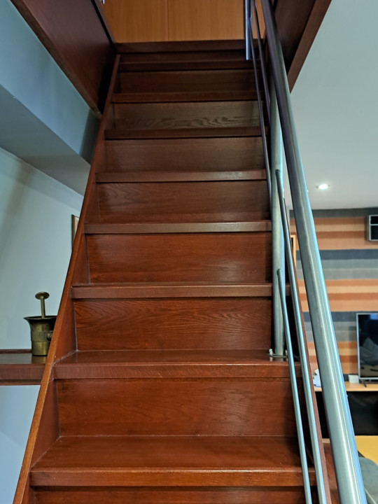 A lakás első szintjén előszoba, egylégterű konyha-étkező-nappali, hálószoba, zuhanyzó, WC és erkély, a tetőterében szoba és fürdő-WC került kialakításra.