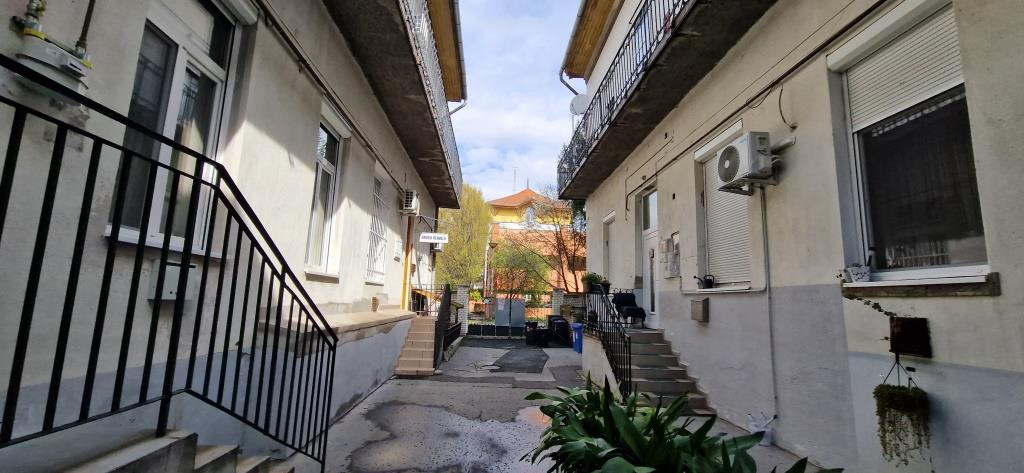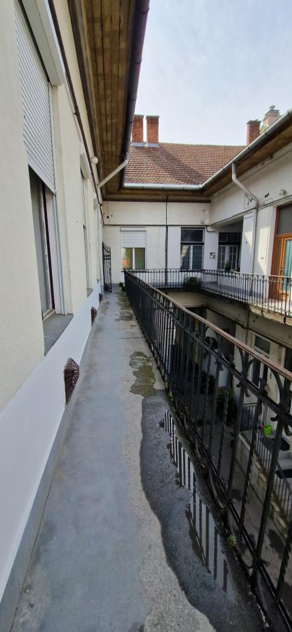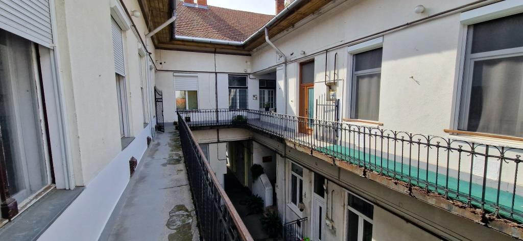 Kaposvár belvárosában, az Ady Endre utcában kínáljuk megvételre ezt az első emeleti, 93 m2-es lakást. Méretei és elosztása alapján alkalmas egy nagyobb családi otthon kialakítására, vagy kettéválasztva két kisebb lakást is létre lehet hozni belőle. Bejárata függőfolyosóról nyílik, ami saját erkélyként is használható, mivel leghátsó lakás lévén, le van zárva. Az előtérből jobbra két egymásból nyíló, nagyméretű, parkettás szoba található, a végén pedig a fürdő. Balra az egykori konyha van a kamrával, és egy kicsi, de ablakos tároló helyiség. A belmagasság lehetővé teszi a galériázást, ezzel szükség szerint tovább növelhető a lakóterület. Minden ablak nyugati tájolású, a függőfolyosóra, illetve a Kontrássy köz felé néznek. A fűtés egyedi gázos, konvektoros. Ha valaki kettéválasztaná a lakást, ötletes megoldásokkal, galériákkal, álmennyezettel akár két 50-60 m2 lakóterületű tágas, barátságos és praktikus otthont is kihozhat belőle. Remek lehetőség a belváros szívében befektetésként, vagy saját használatra egyaránt!