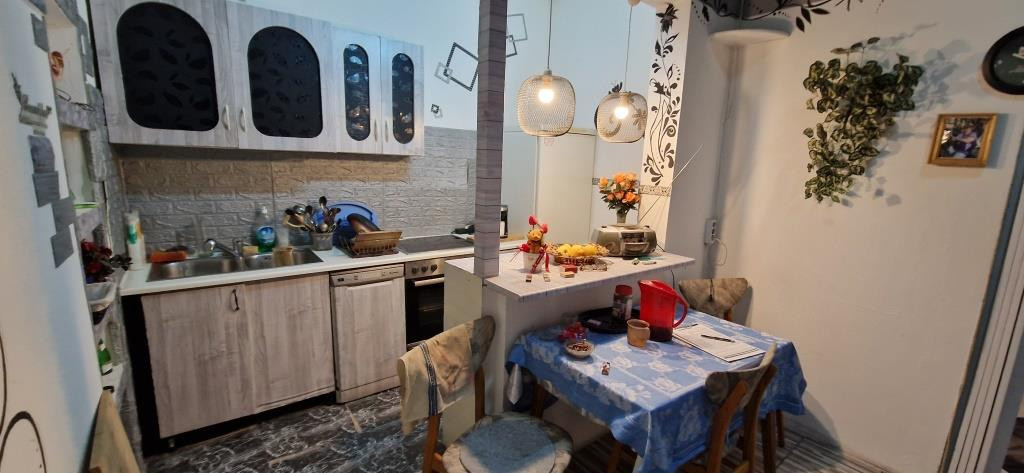 Kaposváron, a Bartók Béla utcában kínáljuk megvételre ezt a valóságban 67 m2-es (a tulajdoni lap szerint 57 m2-es) társasházi lakást. A földszinten helyezkedik el, 1 + 2 félszobás. Bejárata hátul, a terasz felől nyílik, ahonnan az előtérbe léphetünk. Ide kapcsolódik a zuhanyzós fürdő, illetve innen mehetünk tovább a tágas étkezős konyhába, majd az utcafronti nagyszobába, vagy a legkisebb, jelenleg gardróbként használt szobába. A nagyszobából nyílik még egy háló utcai ablakkal. A lakás jó állapotú, két éve történtek benne felújítások. Fűtése kétféle módon megoldható, van egy kályha a nagyszobában, ami kellemes meleget ad, illetve elektromos radiátorokkal. Tartozik hozzá egy teraszként jól kihasználható, betonozott udvar fedett kiülős résszel, valamint melléképületek és pince is. A belváros gyalog 10 perc sétával elérhető, de buszmegálló is van a közelben.