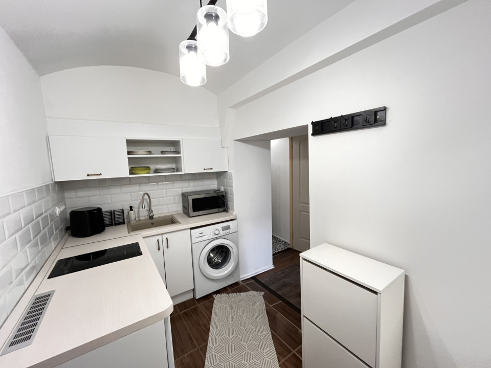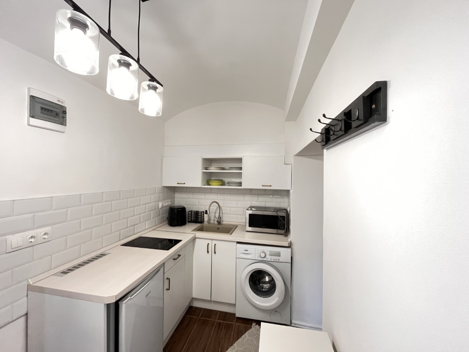 Kaposváron a belvárosban, a Dózsa György utcában - a színház közelében - található rendezett társasház alagsorában lévő 24 m2-es, felújított - belső udvari - csendes lakás, berendezéssel együtt eladó. A lakásban 1 szoba, konyha beépített konyhabútorral és gépekkel, fürdőszoba, wc helyiségek kerültek kialakításra. A rezsije roppant kedvező, a fűtése elektromos fűtőpanelekkel megoldott, a meleg víz ellátást villanybojler biztosítja. Személygépkocsival a társasház zárt udvarában lehetséges, továbbá tároló is van. A lakás az elhelyezkedése és kialakítása végett akár kiváló befektetés is lehet! A közvetlen közelében található a színház, számos közintézmény, éttermek, és a Kossuth tér is csupán néhány perc kényelmes séta távolságra van.