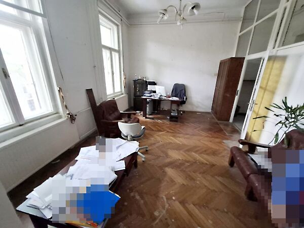 Jelenleg az ingatlan egy nagy, összenyitott térként funkcionál, 3 szoba, konyha, 2 mellékhelyiség és egy fürdőszoba kialakítással, irodaként használták korábban. Azonban könnyedén két különálló lakássá is átalakítható: