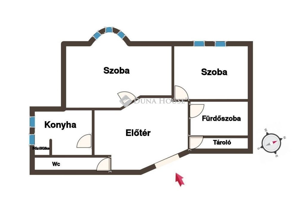 - 3. emeleten található, 52 nm, tégla építésű- 2 szobával rendelkezik, melyből az egyik 11 nm, másik 22 nm alapterületű. A nagyobb szoba parkettája újonnan van festve, nagyon szép.