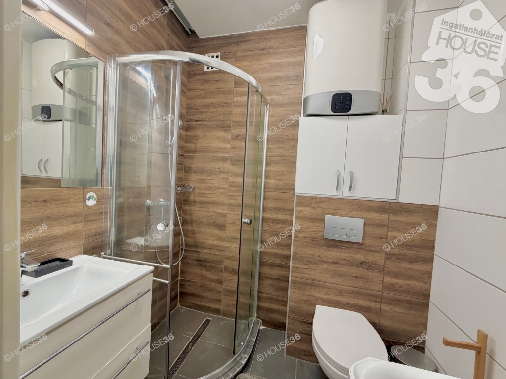 - új fürdőszoba elegáns üveg tolóajtóval