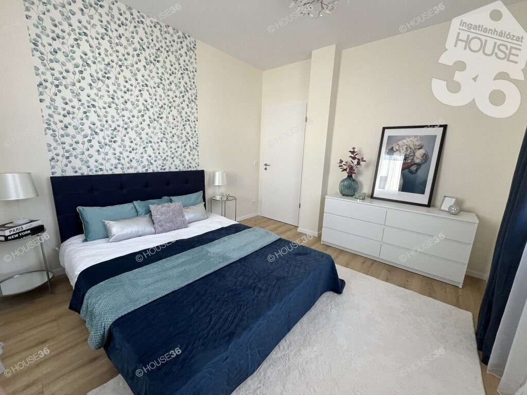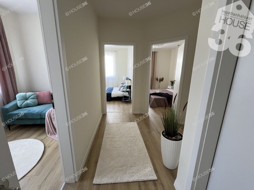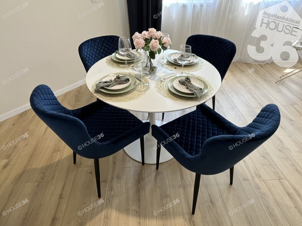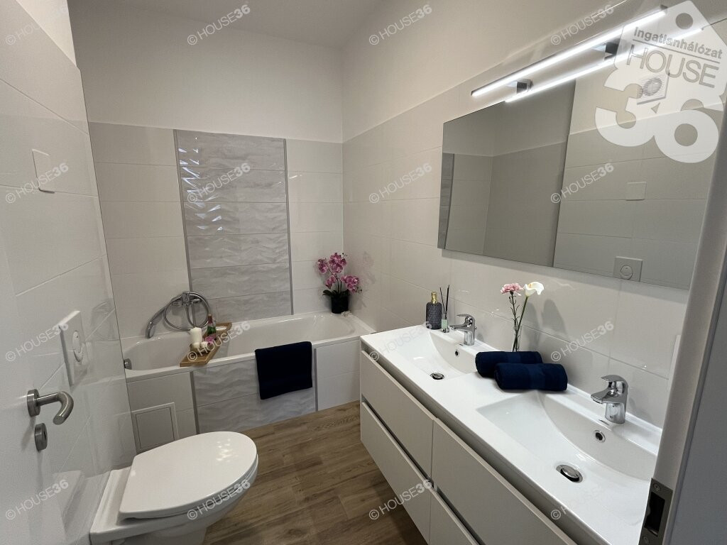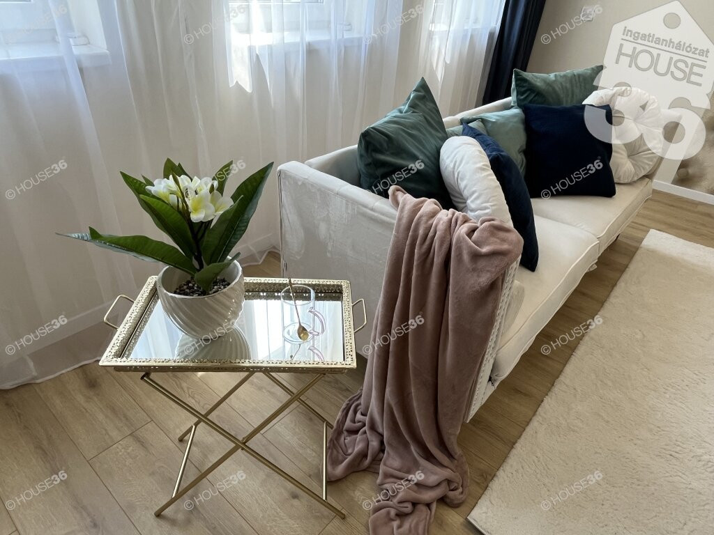 A lakás teljes területe laminált padlóval burkolt, kivéve a háztartási helyiséget, a fürdőszobát és a külön WC-t. Ezekben a helyiségekben páraelszívó rendszer működik. A minőségi álomkonyha varázsát egyedi hangulatvilágítás teszi még vonzóbbá.