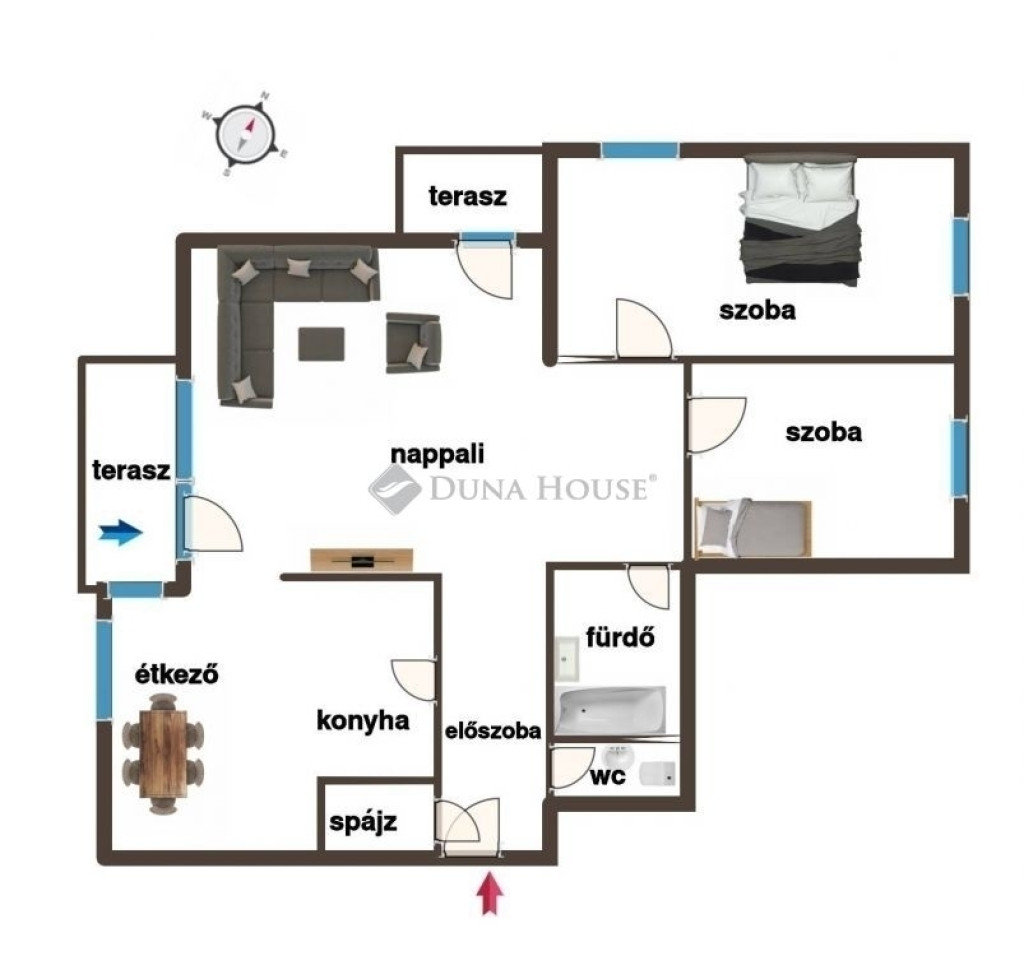 - redőnyös, hőszigetelt üvegezésű ablakok mindenhol