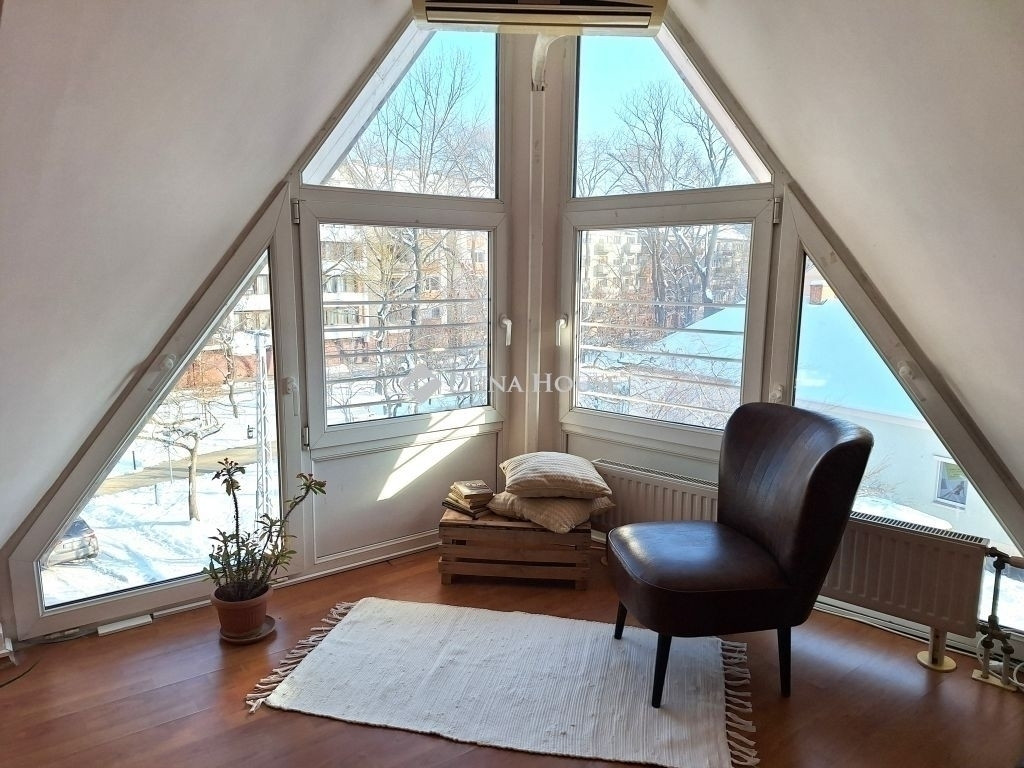 Az otthon különlegessége a nappaliban található hatalmas üvegfelületekben rejlik, amelyek rendkívüli világosságot biztosítanak, miközben három utcára nyíló, lenyűgöző panorámát kínálnak, köztük a Gyenes téri zöldövezeti sétányra.