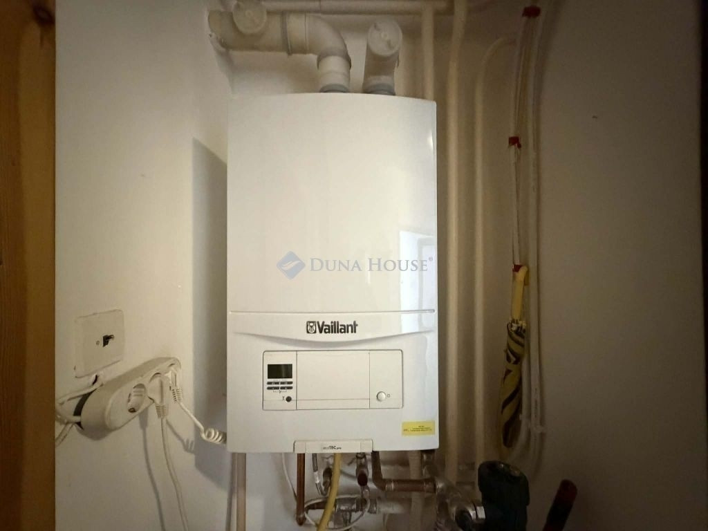 A lakásban gáz-cirkó fűtés van kazáncserével. Az épület tetőszerkezete javítva, a kéményt kibélelték.