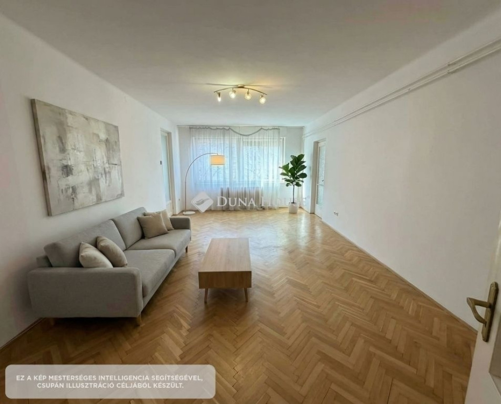 A lakás üres, a reklámkép illusztráció, egy elképzelés berendezett állapotra.