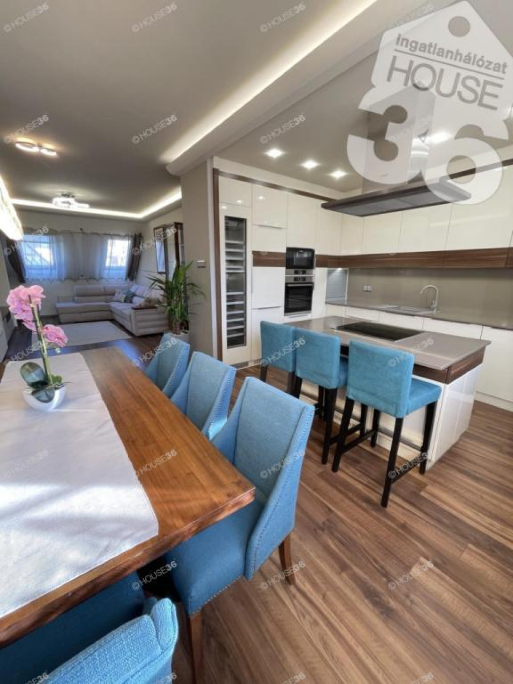 Nappali + 3 szoba, garázs, fürdő, tágas nappali étkező, amerikai konyha.