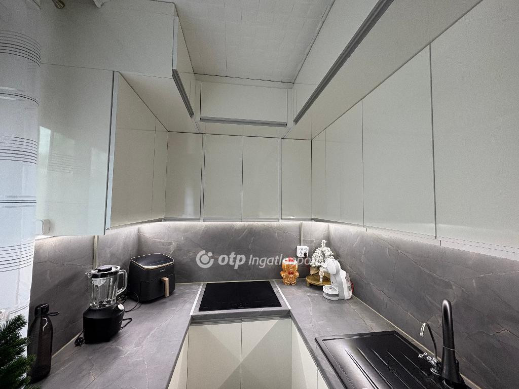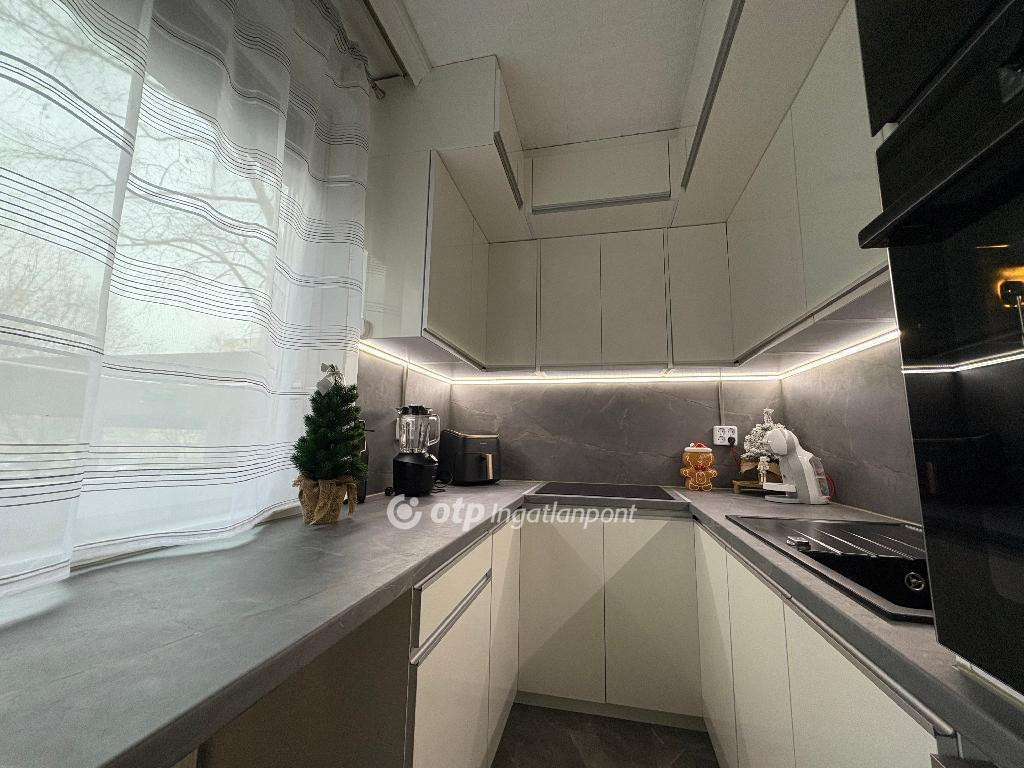 A lakás 2024-ben teljes festést kapott. 2025 augusztusában egy vadonatúj, asztalos által egyedileg gyártott, modern konyhabútor került beszerelésre, ami a vételár részét képezi, akárcsak a benne található valamennyi teljesen új elektromos berendezés: GORENJE beépített mikrohullámú sütő, beépített elektromos sütő, főzőlap és BOSCH mosogatógép. Szintén a vételár részét képezi az előszobában található 2,5 méter hosszú, 60 cm mély gardróbszekrény. A WC és a fürdőszoba külön helyiségben található. A lakásban távfűtéssel, radiátoros hőleadás biztosítja az otthon melegét, egyedi mérőórákkal felszerelve, illetve a klímaberendezés is alkalmas fűtésre és hűtésre egyaránt. A hőszigetelt műanyag külső nyílászárók redőnnyel vannak felszerelve. A beltéri ajtók újak, divatos színvilágúak, a bejárati ajtó HiSec acél biztonsági ajtó.