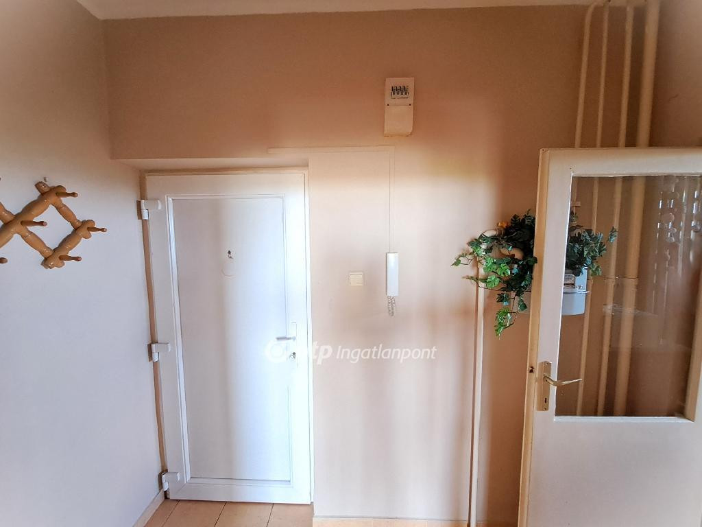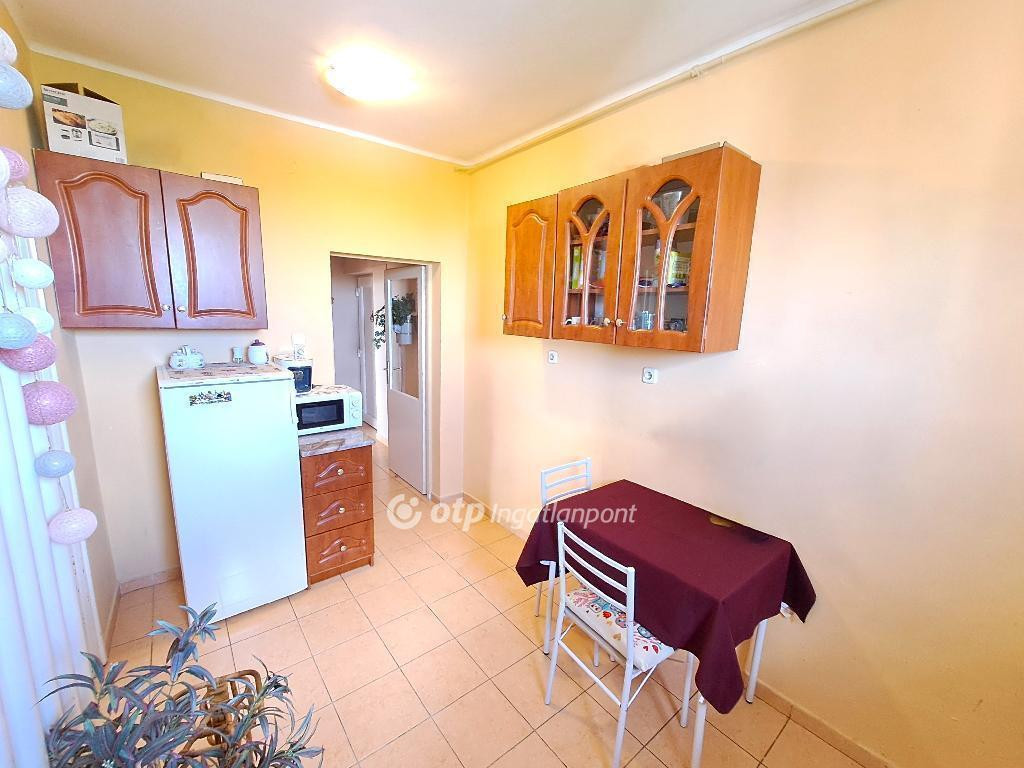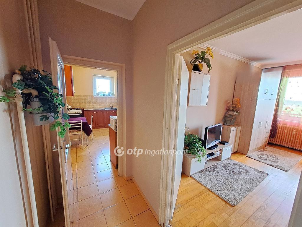 Bács-Kiskun vármegye, Kecskemét, Árpádváros részen 54 m2 hasznos alapterületű, kétszobás erkélyes társasházi lakás eladó. Az ingatlan egy 9 emeletes társasház zárószintjén helyezkedik el. A panel szerkezetű és tégla válaszfalazatú társasház korábban felújításon esett át: homlokzata 10 cm-es szigetelést és kőporozást kapott, a tető teljes szigetelése felújításra került. A lakás egy nappaliból, egy szobából, egy előszobából, egy közlekedőből, egy konyha-étkezőből, egy kamrából, egy fürdőszoba-WC helyiségből és egy erkélyből áll. A külső hőszigetelt műanyag nyílászárói és biztonsági bejárati ajtajának cseréje megtörtént, a belső nyílászárók eredeti fa szerkezetűek, jó állapotban vannak. A szobák laminált padló-, a többi helyiség járólap borítást kapott. A konyha és a fürdőszoba felújítása megtörtént, az előszoba és a közlekedő újraburkolásra került.