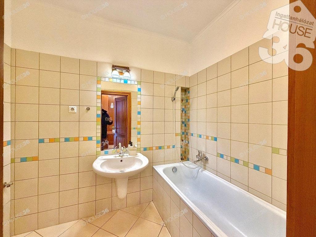 Mosdó, kád és törölközőszárító; a WC külön helyiségben