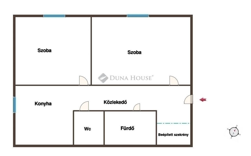 - műanyag nyílászárók, redőnyökkel, konyhában szúnyoghálóval