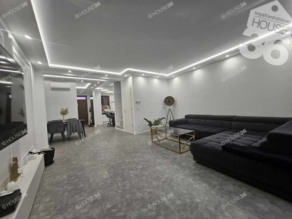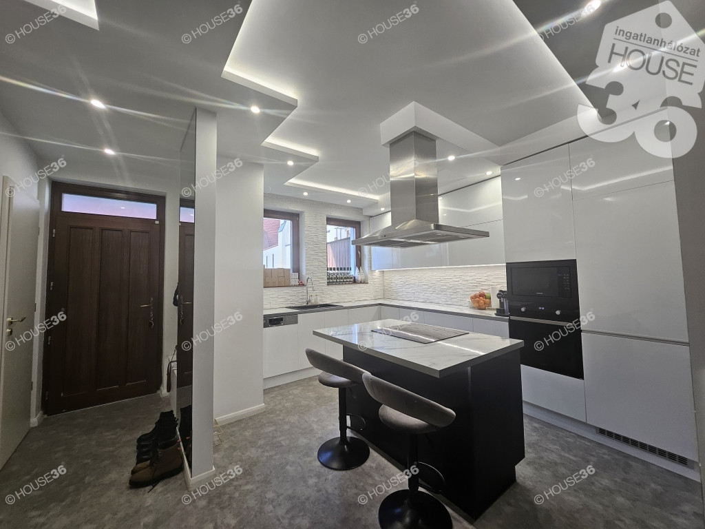 Kecskeméten, a Piac szomszédságában, 2020-ban átadott, 110 m2-es, nappali + 3 szoba+ gardrób +2 fürdős, luxus kivitelezésű és felszereltségű sorházi lakás, gyors költözéssel eladó! Tartozik hozzá egy teremgarázs is, további 10 millió forintért!