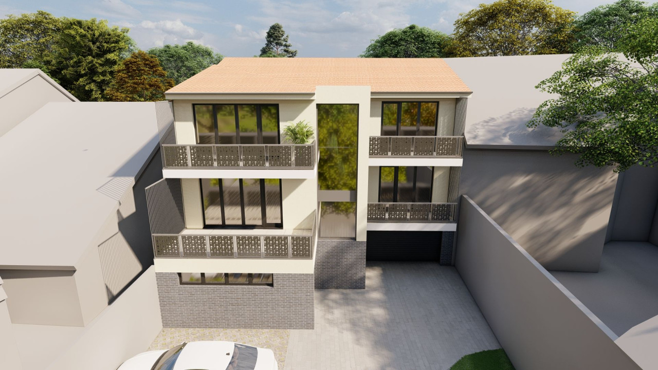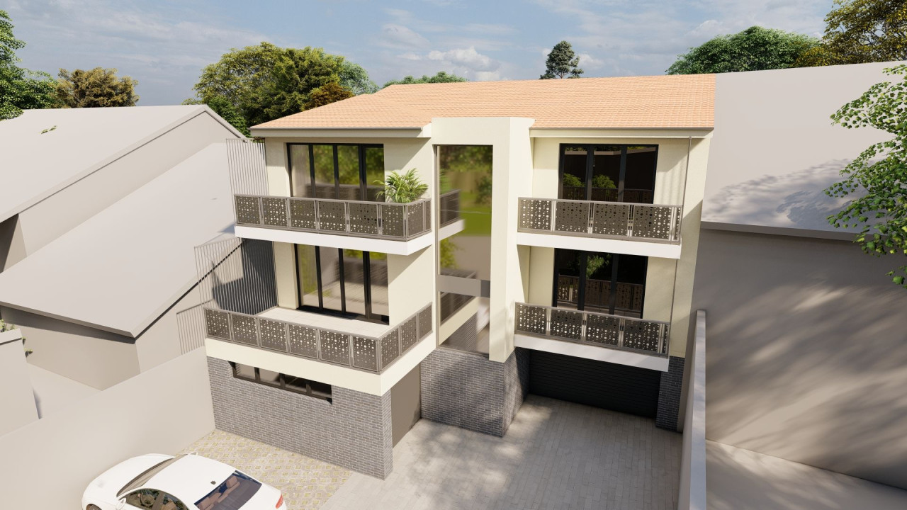 Földszinten garázsok –kocsibeállók, I.emelet 2 lakás, II. emelet 2 lakás!