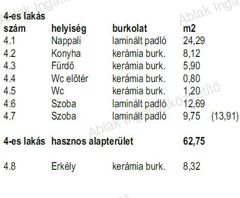 4-as lakás 62,75m2 + 8,32m2 terasz, Ára:91,332,150,Ft