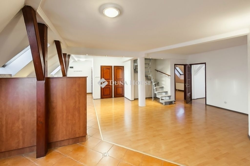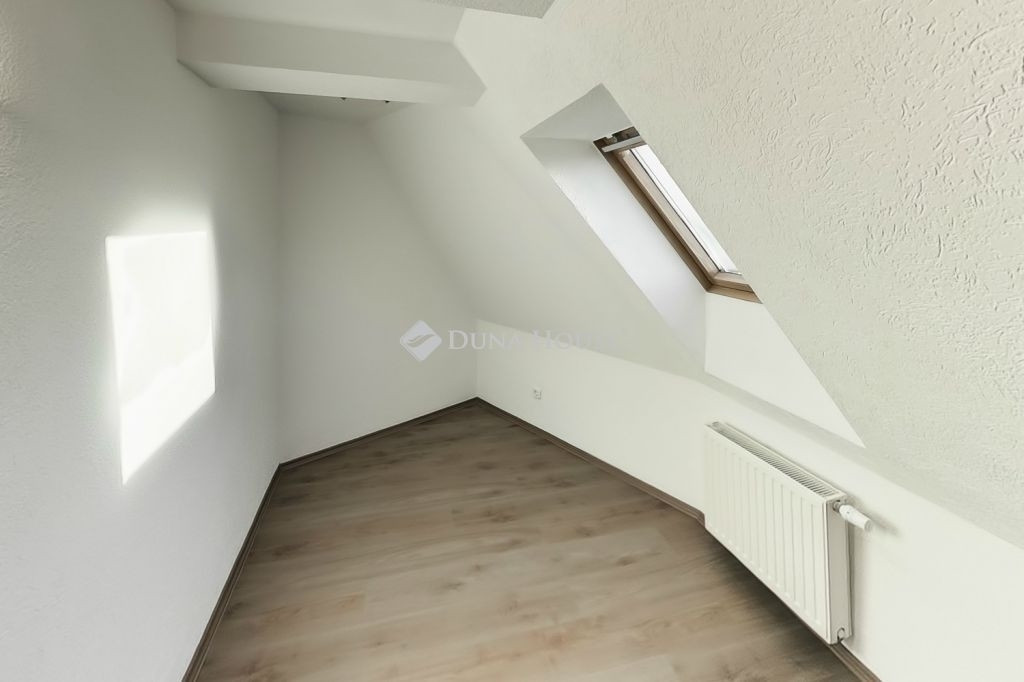 Kecskemét Belvárosában eladó egy tágas, világos, 98 m²-es, kétszintes téglalakás. Az ingatlan nappaliból és 5 külön szobából áll, ideális nagycsaládosoknak vagy azoknak, akiknek fontos a sok élettér.A lakás fiatal építésű, a harmadik emeleten található. Lent a nappali mellett két hálószoba, fent a tetőtérben három további szoba kapott helyet. Két fürdőszoba, beépített, gépesített konyha és 9 m²-es terasz teszi kényelmessé a mindennapokat.Házközponti fűtés van egyedi mérővel, két klíma, VELUX tetőablakok és fa nyílászárók gondoskodnak a kellemes hőérzetről. A lakáshoz két zárt udvari autóbeálló tartozik.Ha belvárosi, jól kihasználható, mégis nyugodt otthont keresel, ez a lakás remek választás lehet.