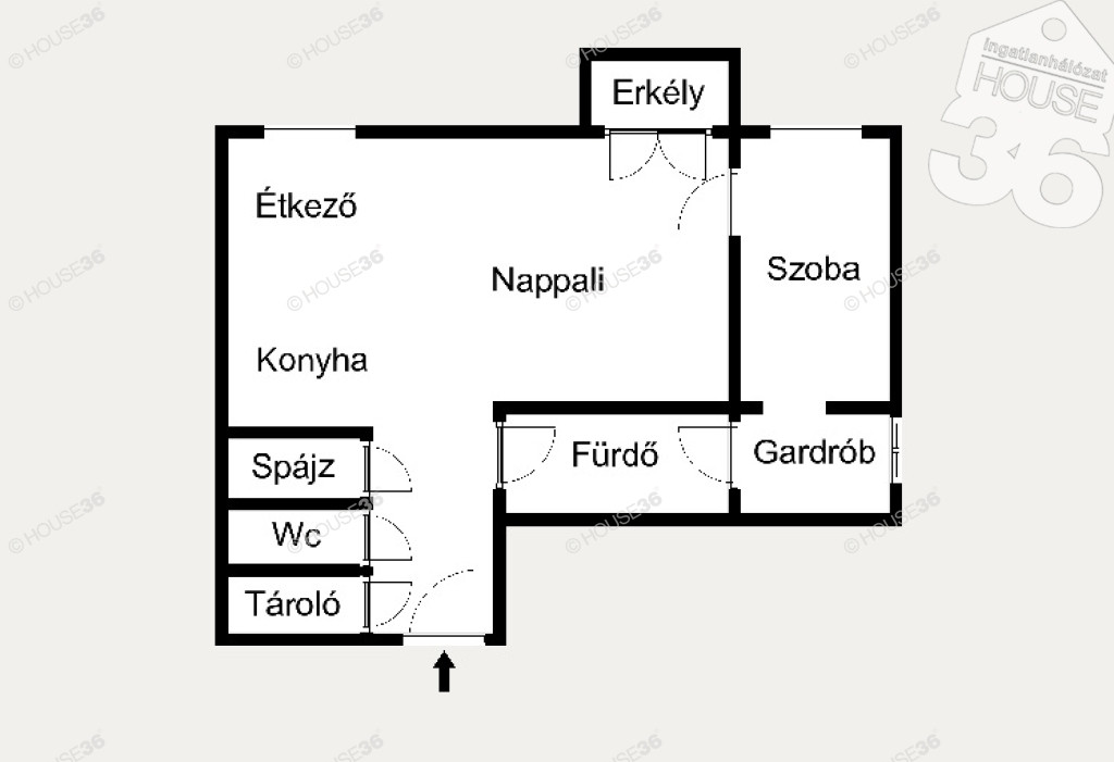 2 szoba ( nappali-konyha-étkező + háló gardróbbal )