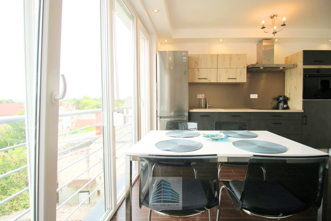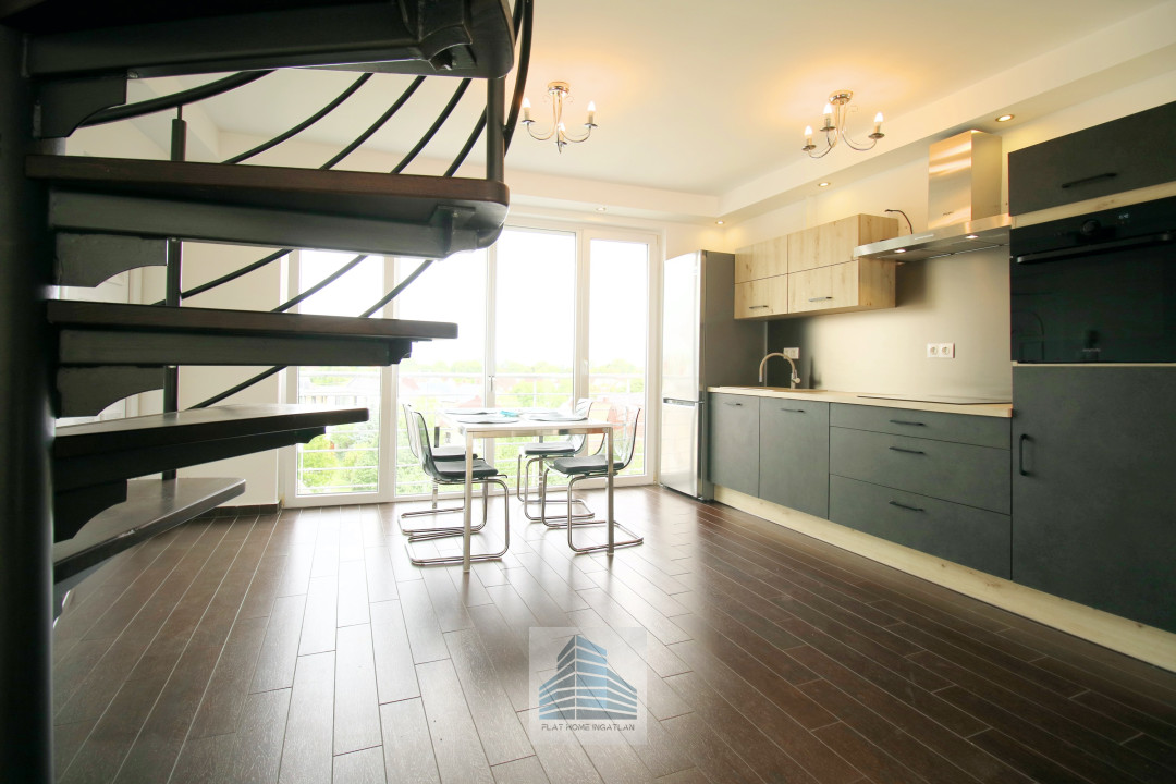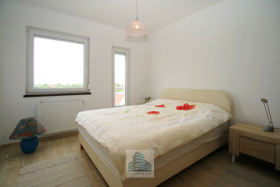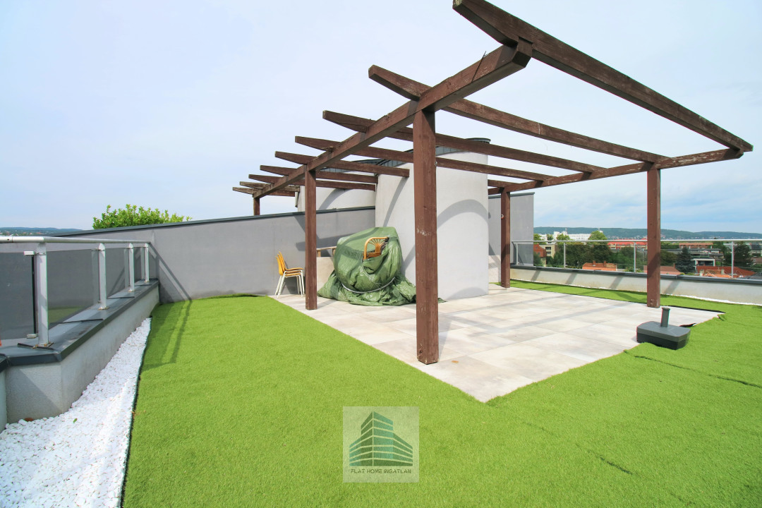 Elosztása szerint: 2 hálószoba, fürdőszoba, Wc, tetőterasz, amerikai konyhás nappali (nagy méretű, panorámás nyílászárókkal az épület két oldalára nyitott lakótér és dinamikus életérzést nyújt szinte egész napon át.)