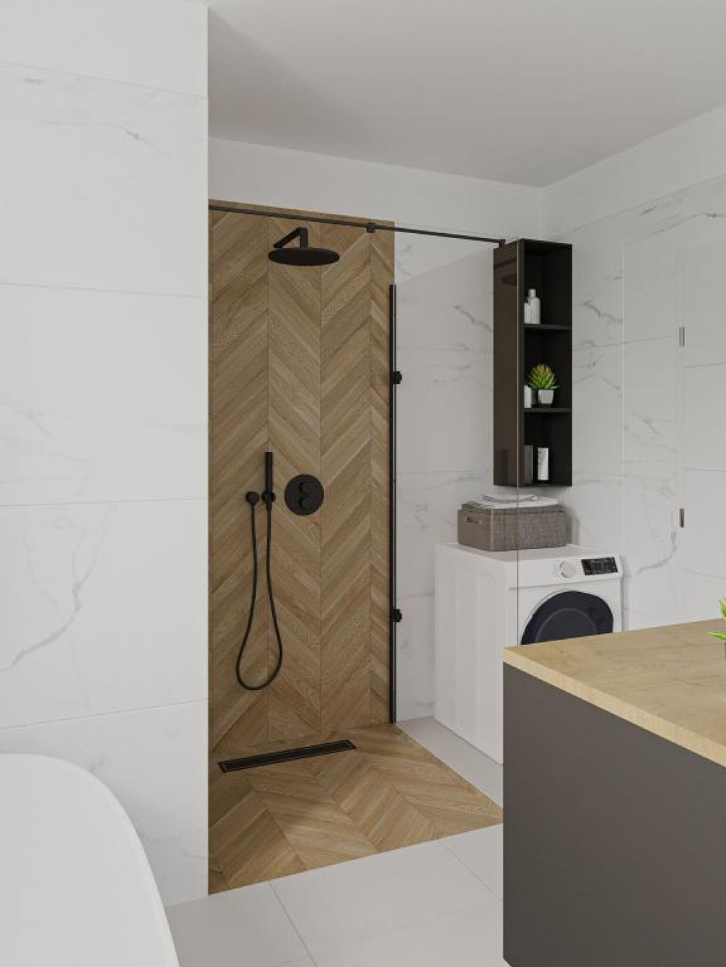 2 modern, prémium burkolatokkal kialakított fürdőszoba + WC