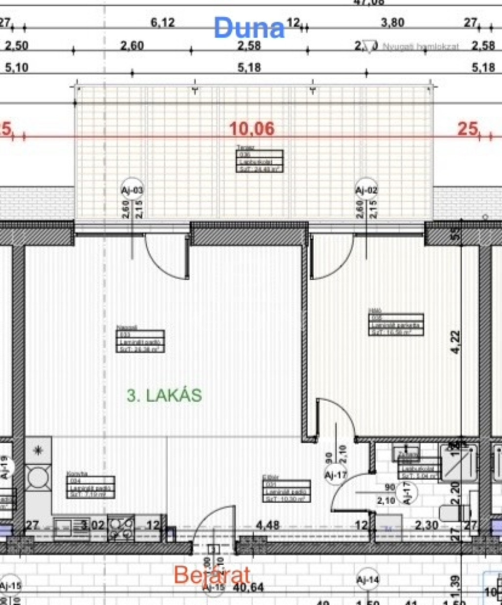 3.LAKÁS: 65,49 m² lakótér + 24,48 m² terasz — 72.040.000 Ft