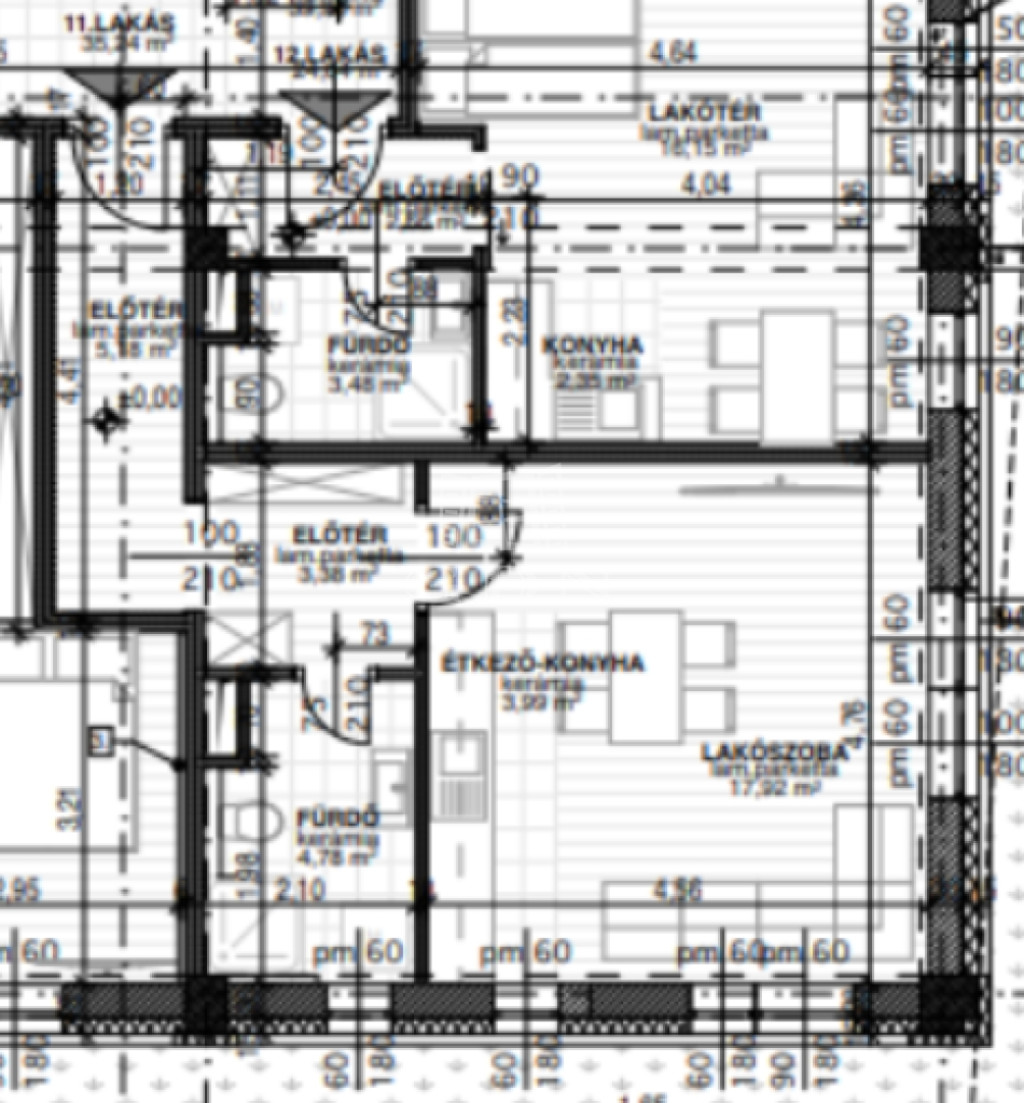 A lakás 35,24 nm, helyiségei:előtér 5,18 nm, fürdőszoba 4,78 nm, előtér 3,38 nm, étkező/konyha 5,61 nm, nappali/lakószoba 16,29 nm.