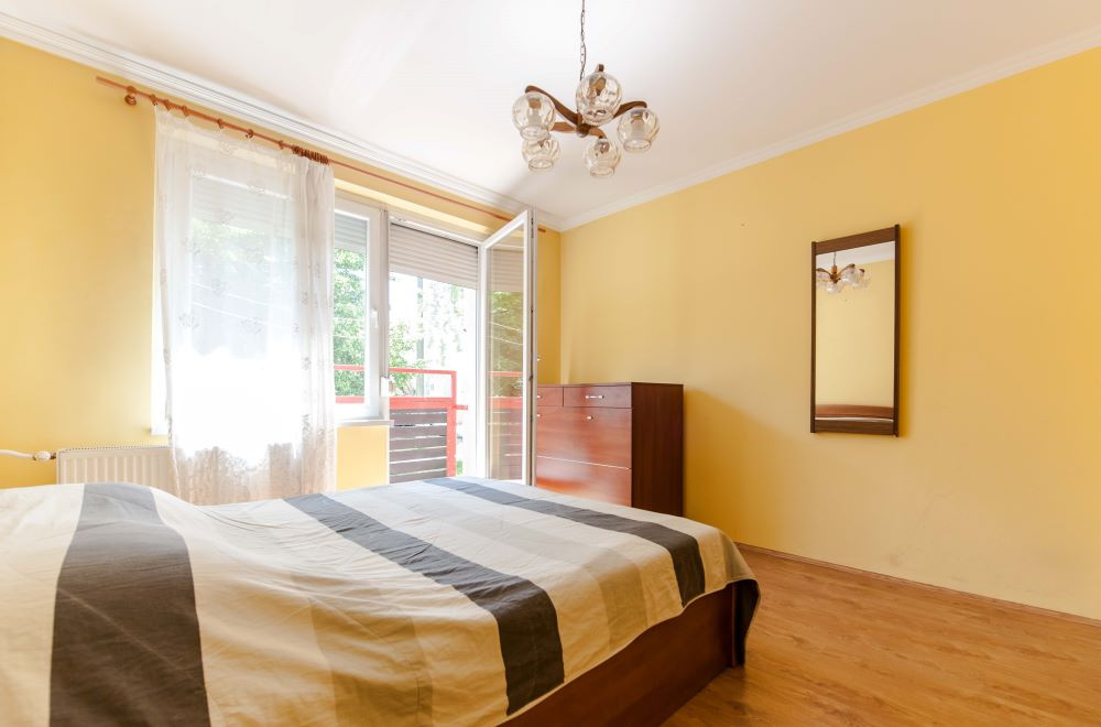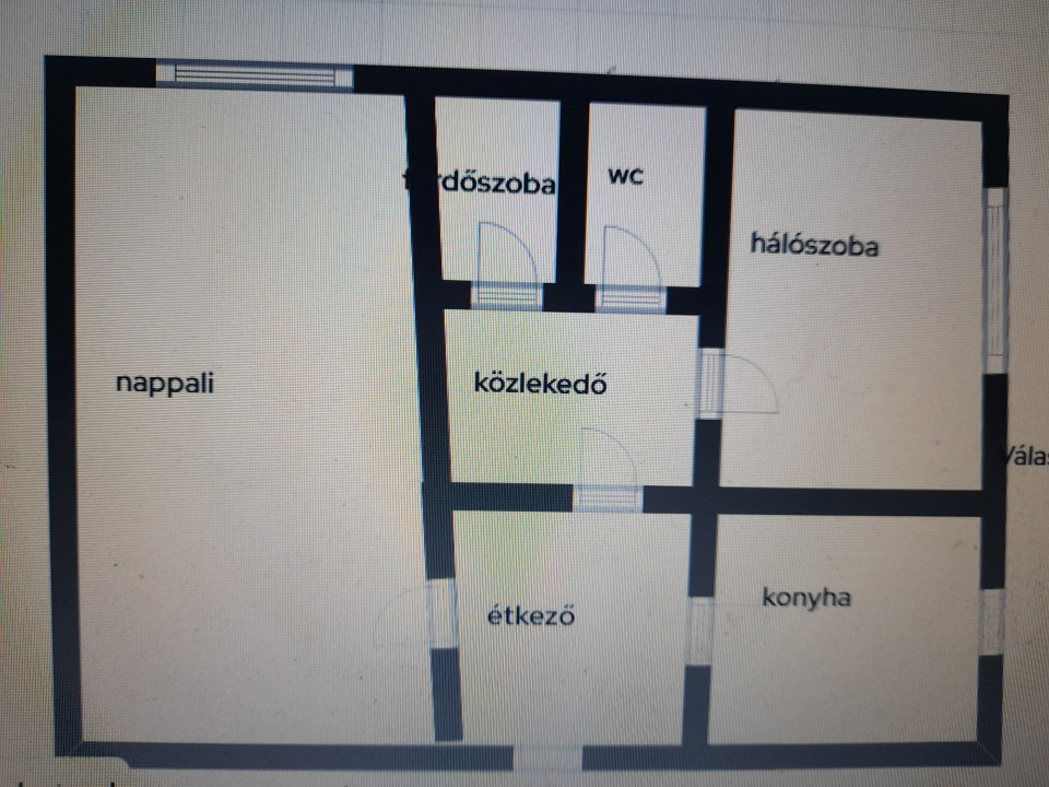 A lakás helyiségei: előtér- étkező, ablakos konyha, nappali francia erkéllyel, szoba francia erkéllyel, zuhanyozós fürdőszoba külön toilet.