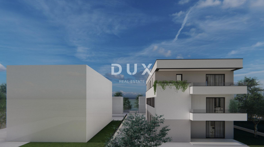 PAG SZIGETE, MANDRE - Modern új épület tengerre néző kilátással, 80 méterre a strandtól! S8