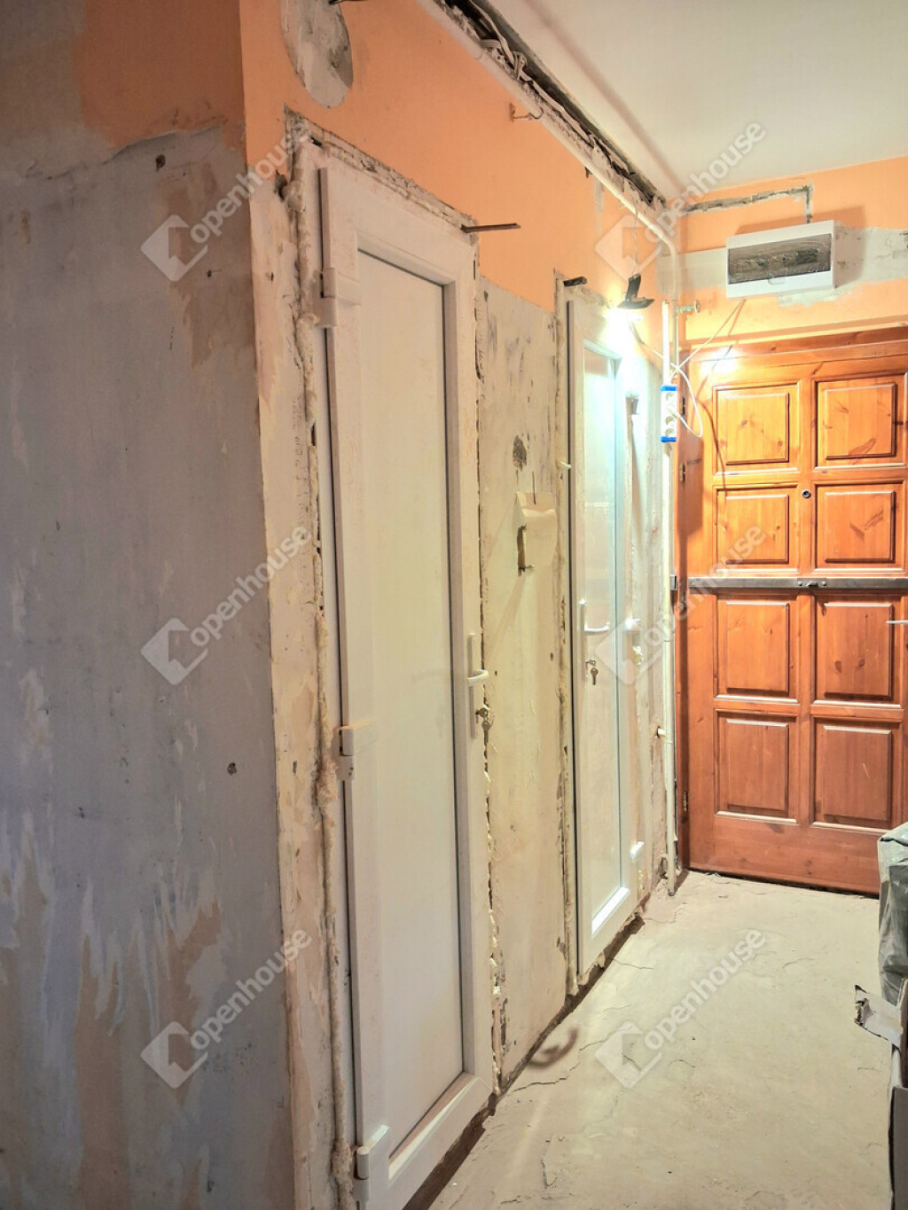 Falban a villanyvezetékek,vízvezetékek,fürdőszoba illetve a wc cseréje az lakásban megtörtént.