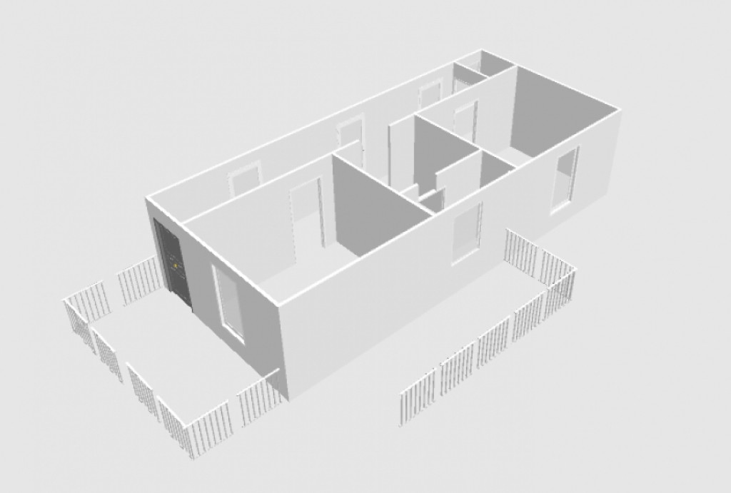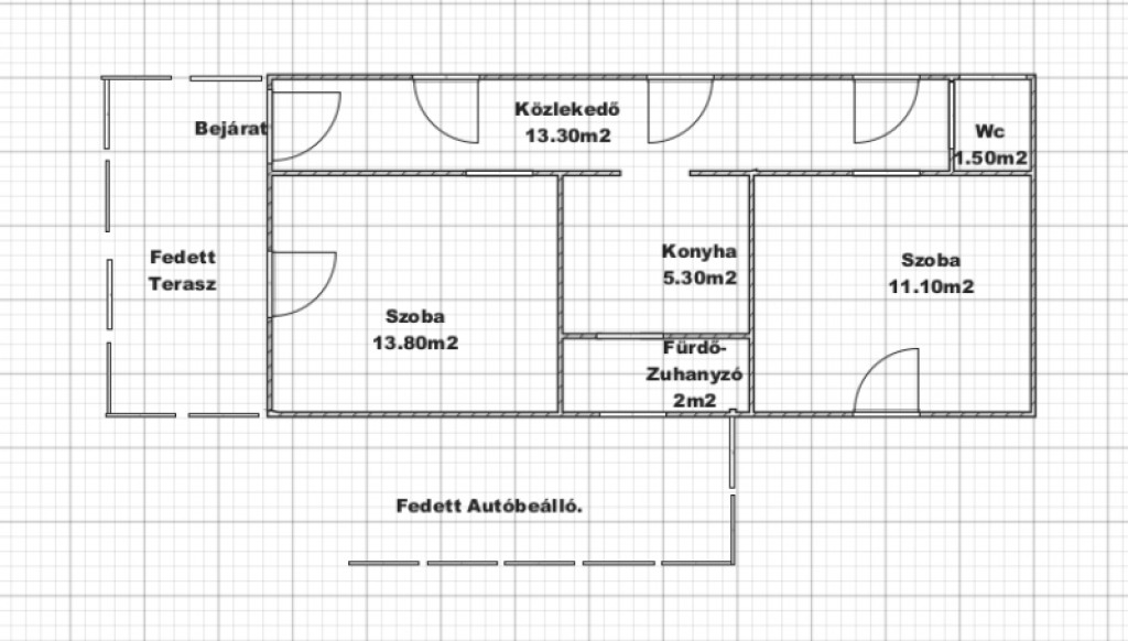 A telken egy téglaépítésű, szigetelt, körülbelül 50 m?-es ház található, amelyben két külön nyíló szoba, konyha, zuhanyzós fürdőszoba és külön WC kapott helyet.