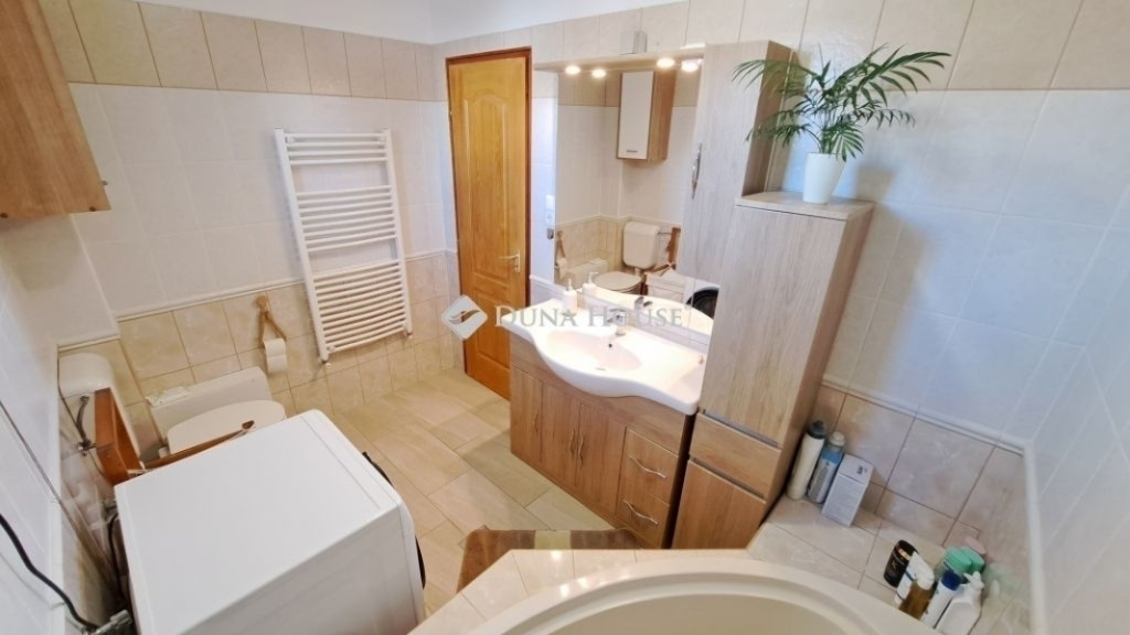 A ház fűtéséről és melegvíz ellátásáról egy rendkívül hatékony kombi cirkó gáz kazán gondoskodik, valamint a felső szinten kialakításra került egy hűtő-fűtő klíma berendezés is.
