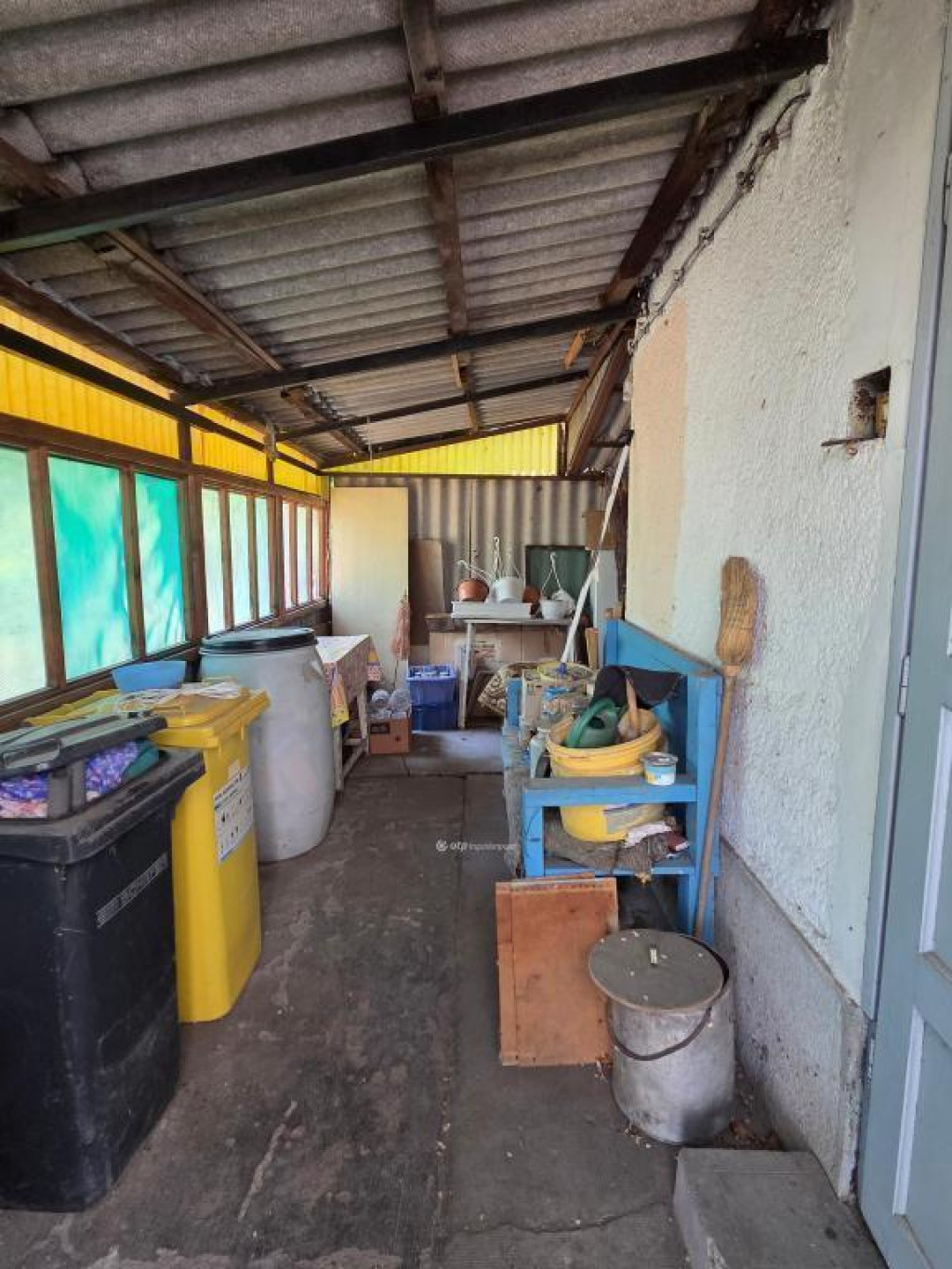 A társasházhoz közös használatú udvar, és a lakáshoz saját használatú udvarrész is tartozik, egy fatárolóval. A lakásnak pincéje is van. A hátsó udvaron van egy fúrt kútja is.