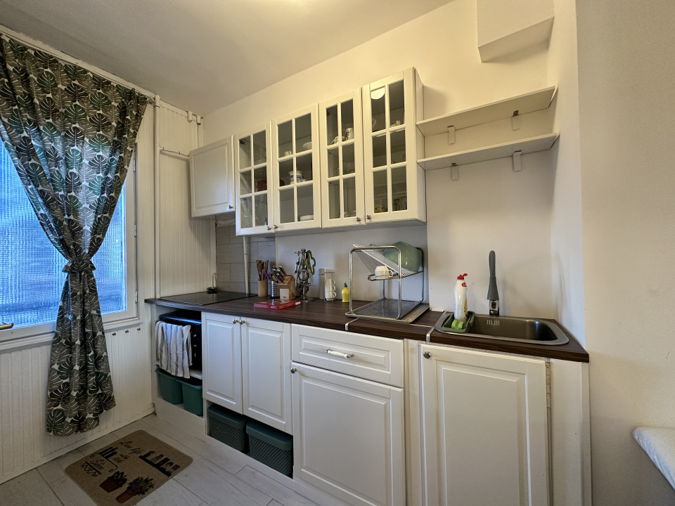 • IKEA vázszerkezetű, Bodbyn elemes beépített konyha gépesítéssel (elektromos főzőlap, szagelszívó, mikrohullámú sütő) – a sütő helye kiépítve, a beépítés már az új tulajdonos választásán múlik