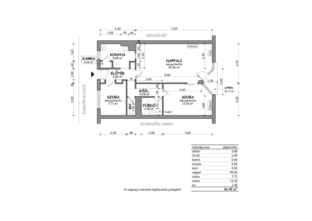 • 2 külön bejáratú szoba + 1 fél szoba (gyerekszoba / dolgozószoba)