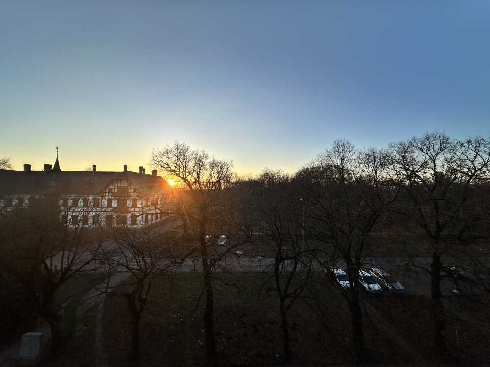 A keleti oldalon a konyha és kisebb szoba kellemes reggeli fényt kap, míg a nappali és a háló nyugat felé néz a parkra