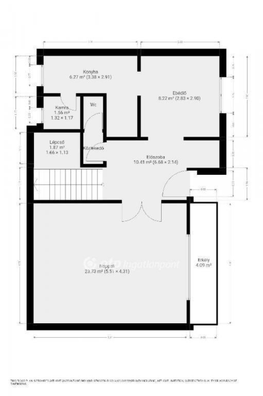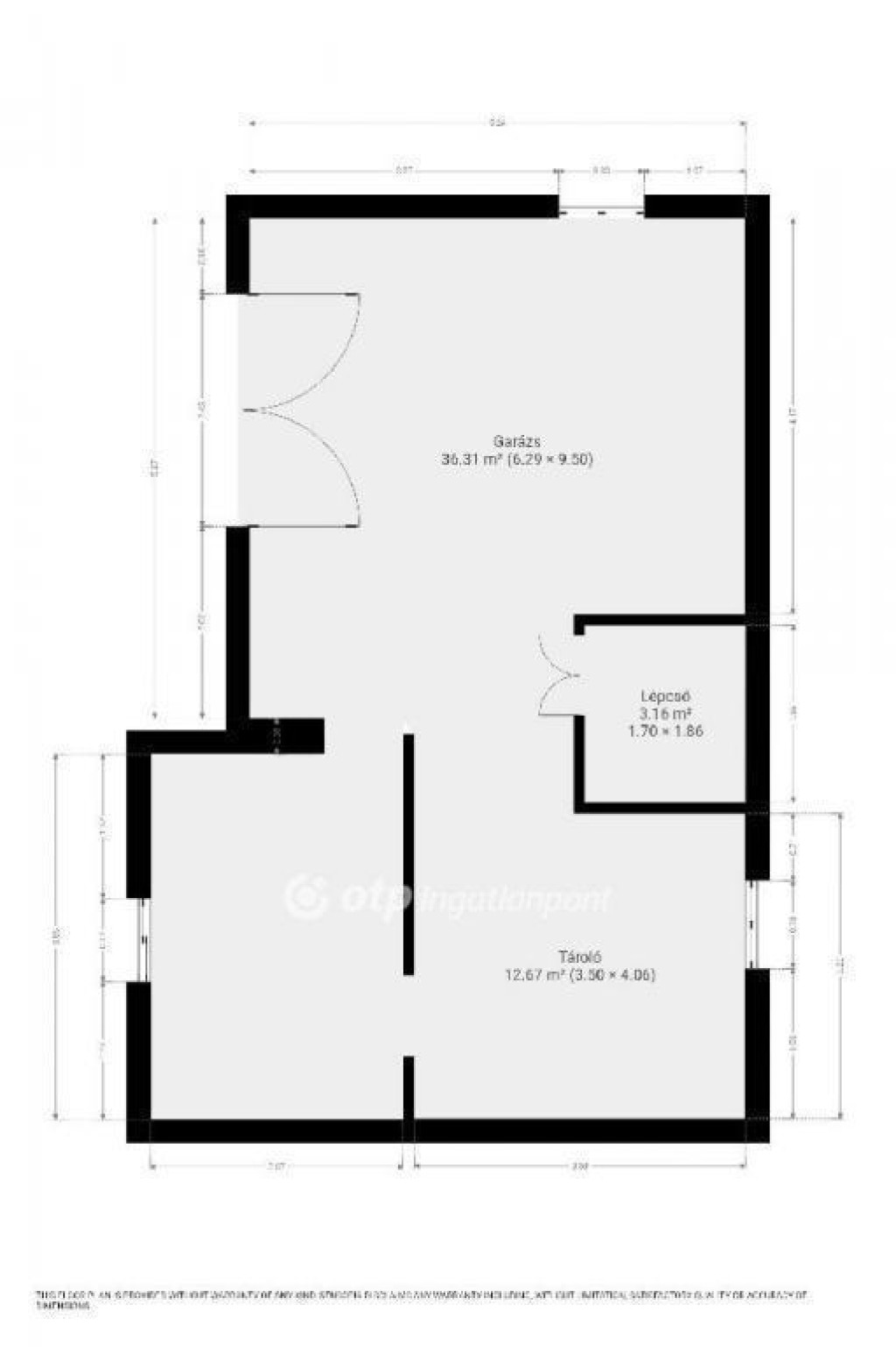 - 55 m2-es garázs és tároló (belső megközelítéssel).