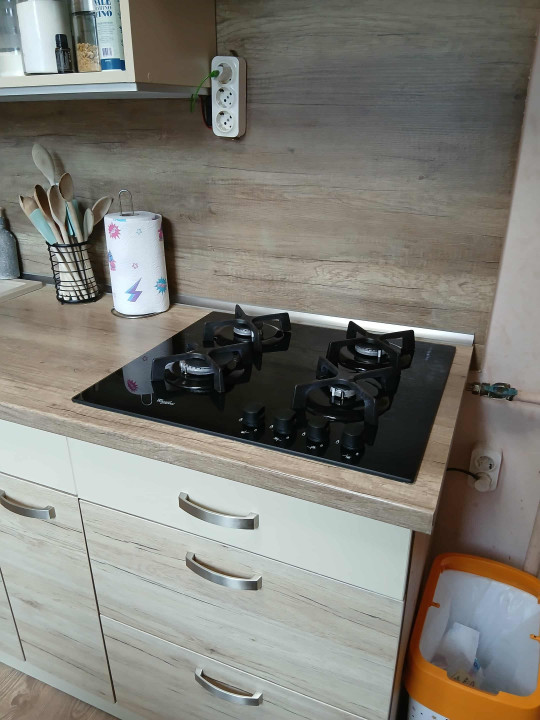 Az elektromos hálózat és biztonságosan jól működik. A lakásban található beépített tűzhely, beépített sütő, szárítógép.. stb.